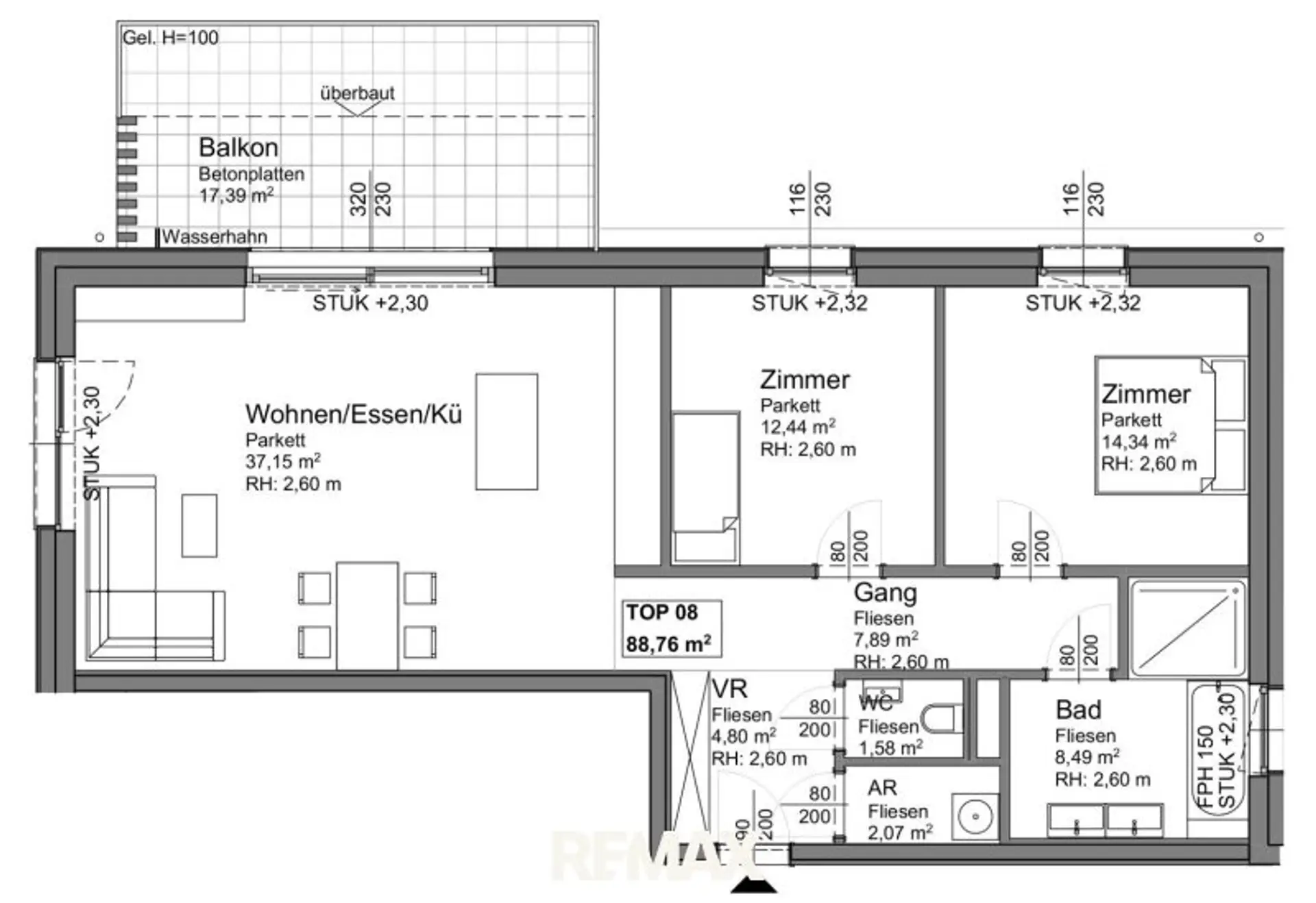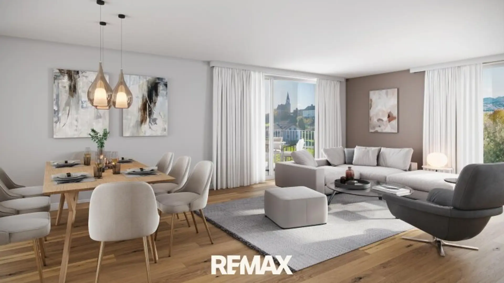 Top 8 befindet sich im 1. Obergeschoss und bietet eine perfekt durchdachte 3-Zimmer-Wohnung. Die großzügige Raumgestaltung schafft ein harmonisches Wohngefühl, während der große Balkon zusätzlichen Platz im Freien bietet – ideal für entspannte Stunden.