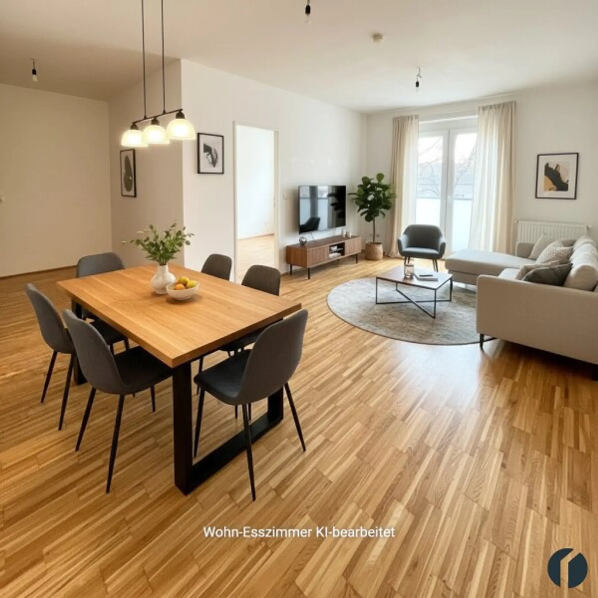 Durch den Vorraum gelangt man direkt zum Wohnbereich. Dieser bildet mit der offenen Küche das Herzstück der Wohnung.