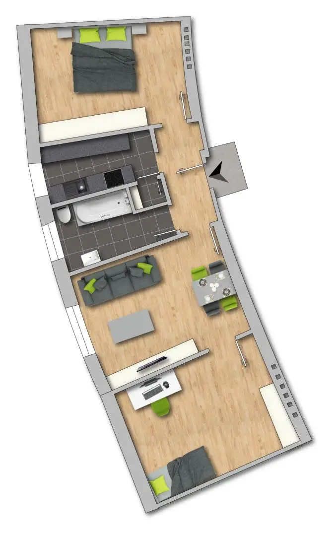 Diese Wohnung eignet sich ideal für Singles, Paare oder WGs.