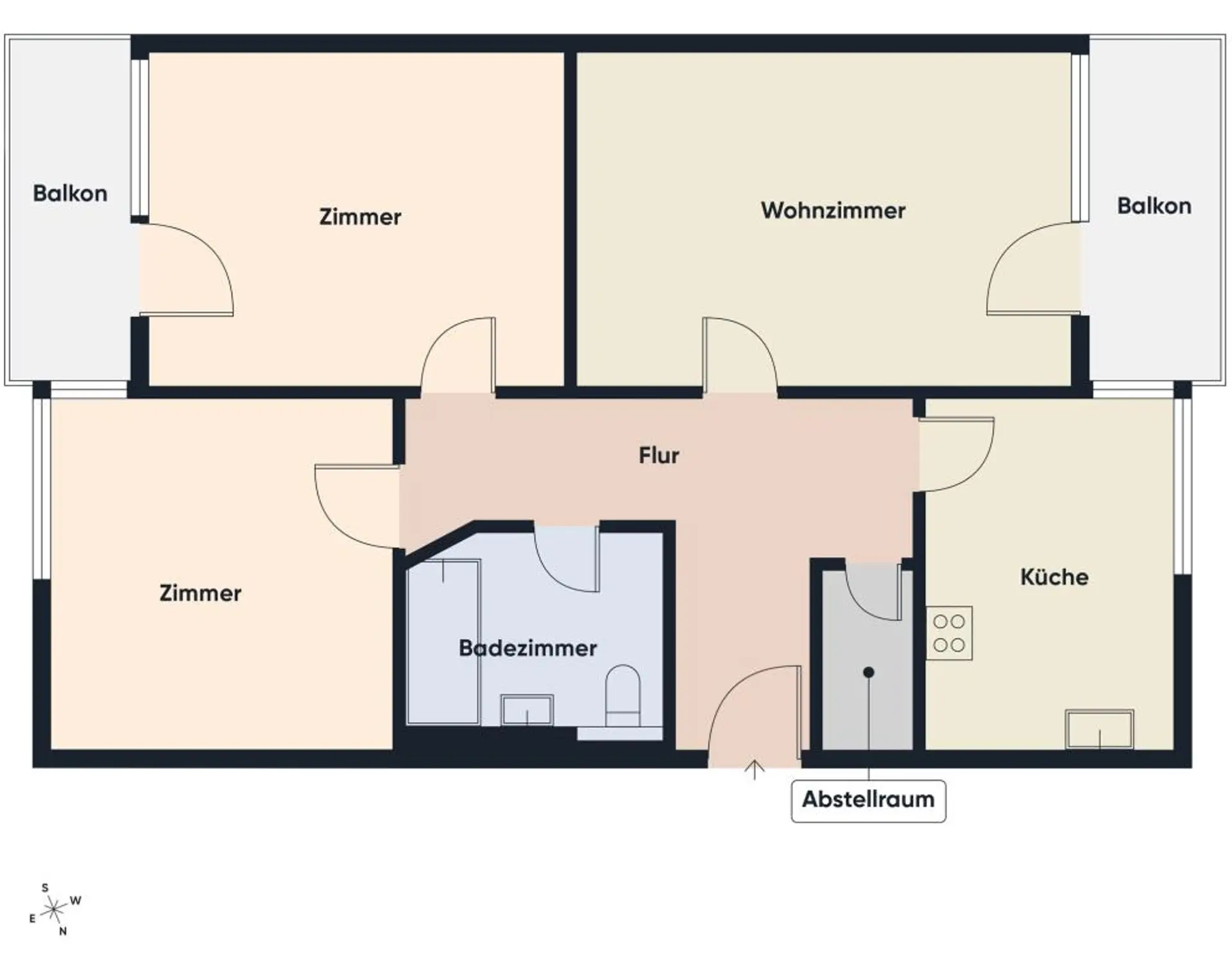 + 2 Balkone vorhanden (östlich + westlich)