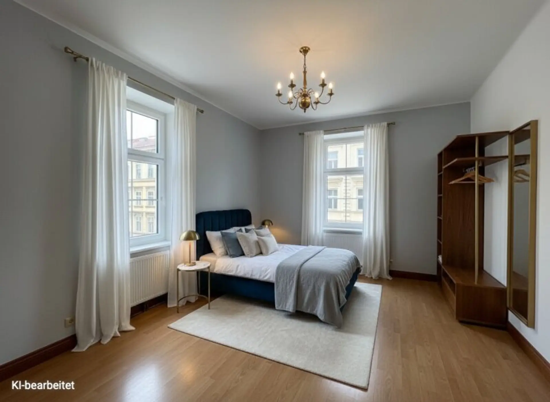 Hinweis: Die abgebildeten, möblierten Räume (ausgenommen Küche) sind KI-generiert und dienen ausschließlich der Veranschaulichung möglicher Einrichtungsideen.