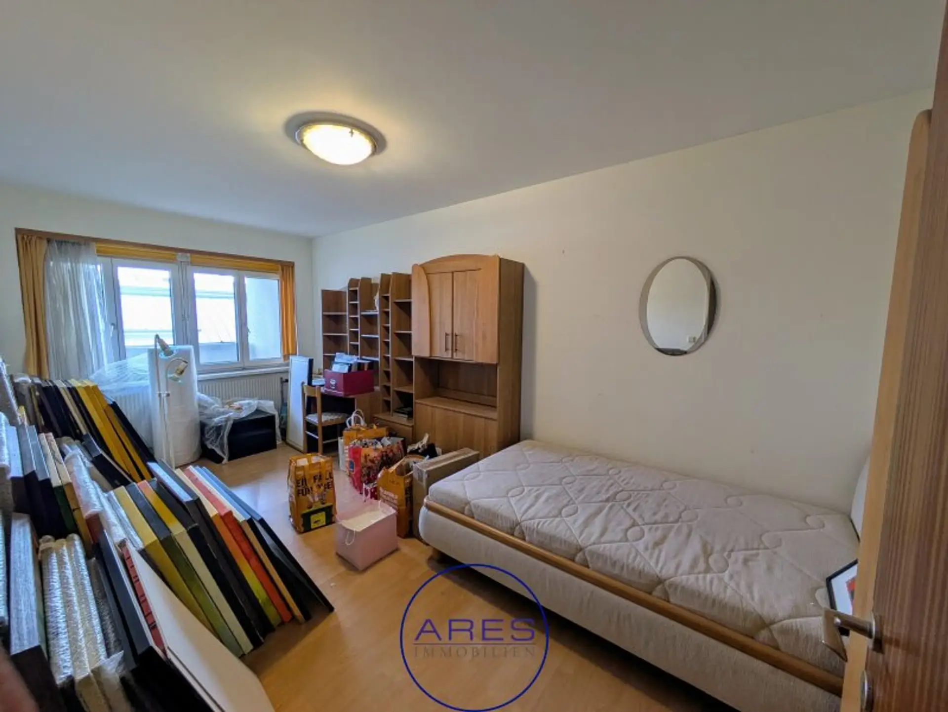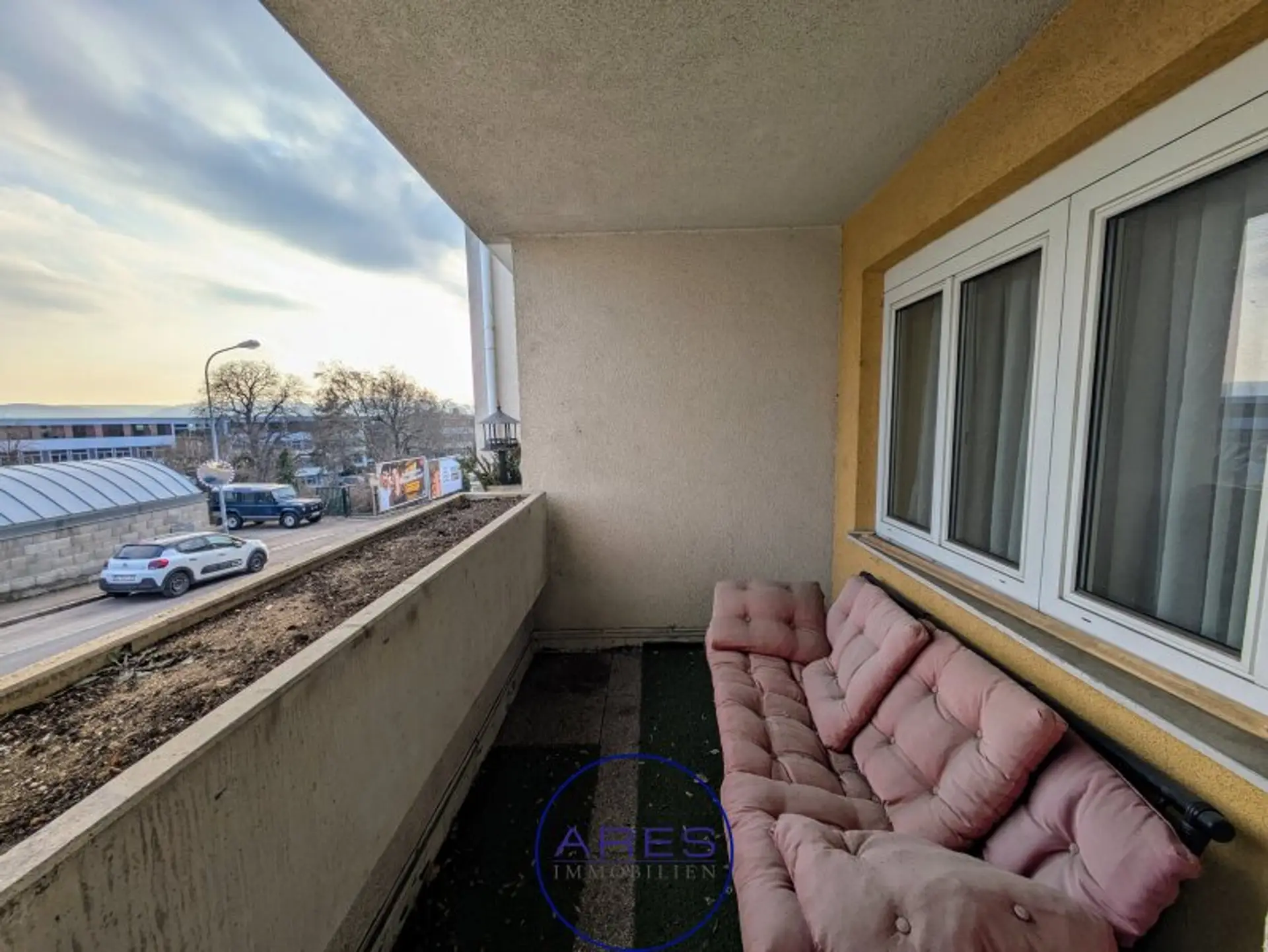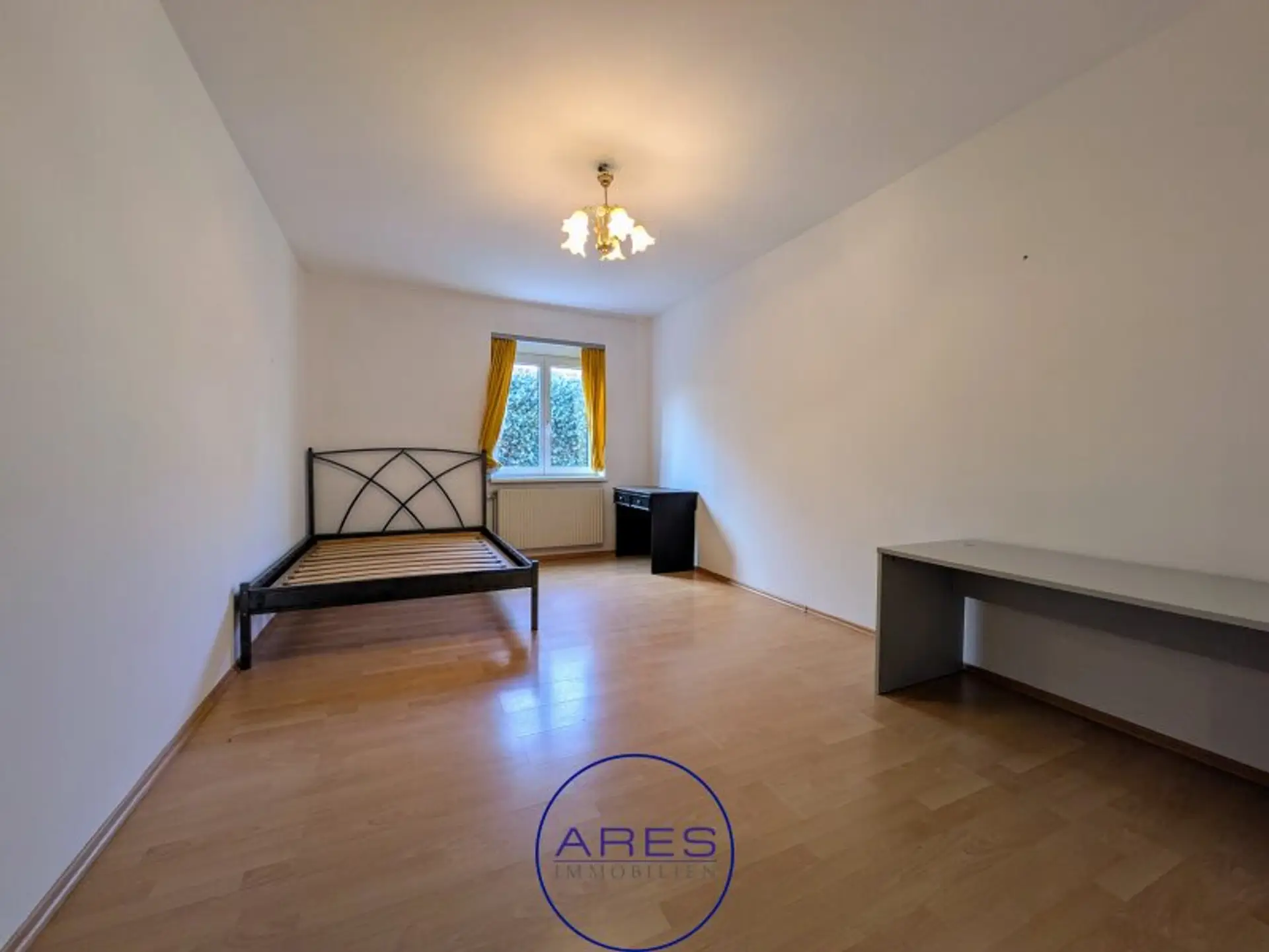 Neben dem sehr großzügigen Wohnzimmer mit offener Küche bietet die Wohnung 3 Zimmer, ein großes Badezimmer, Abstellraum und WC. Durch die optimale Raumaufteilung sind alle Räume zentral begehbar, wodurch die Wohnung sehr gut WG-geeignet ist. Die Loggia erreicht man über das Wohnzimmer. Bad und WC sind sanierungsbedürftig.