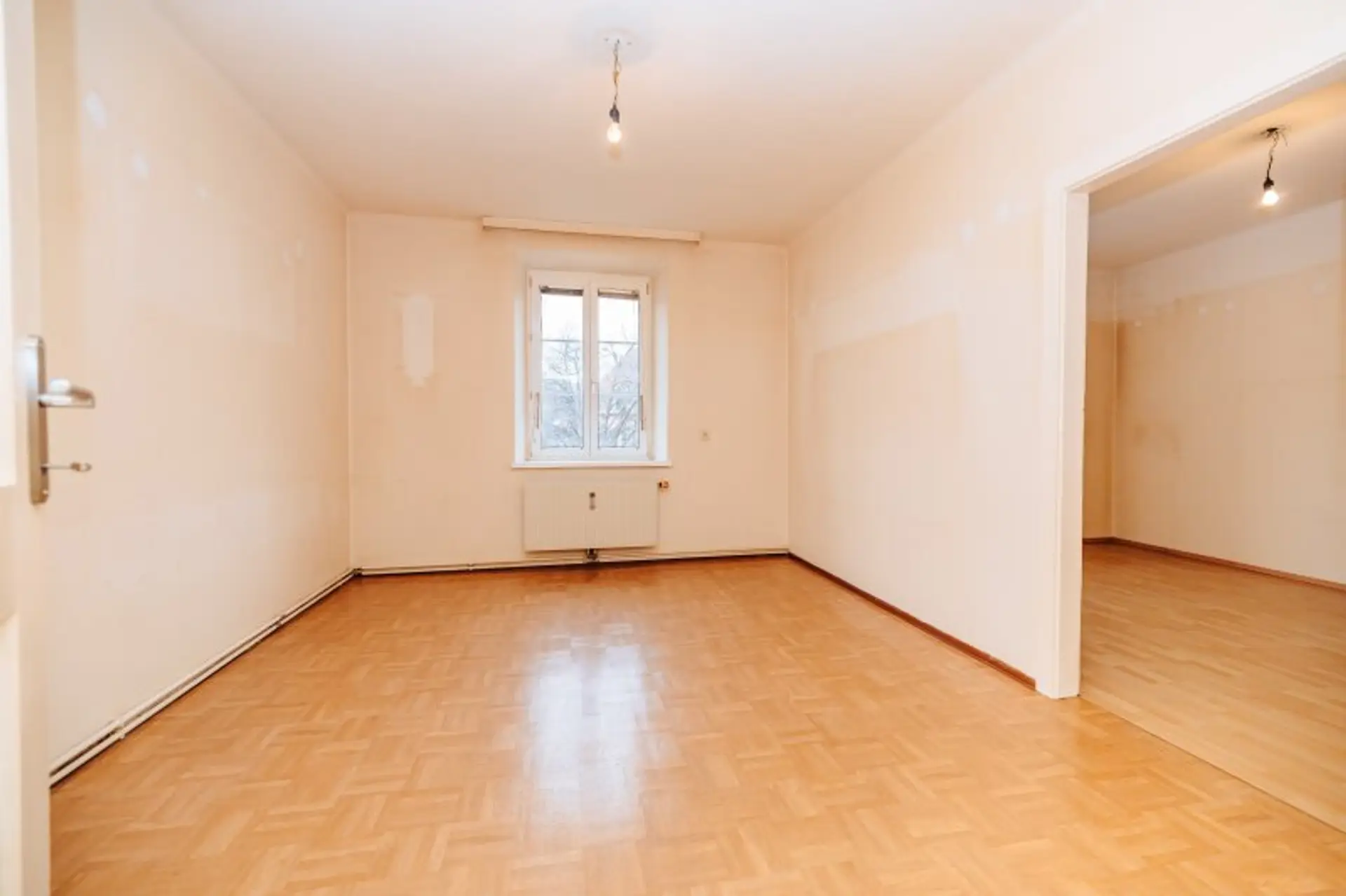 Die vier Zimmer sind lichtdurchflutet und vielseitig nutzbar – als Schlafzimmer, Wohnzimmer, Arbeitsraum oder Kinderzimmer. Die Küche ist aktuell leer, was Ihnen die Möglichkeit eröffnet, Ihre Traumküche ganz nach Ihren Vorstellungen zu gestalten. Das Tageslicht-Badezimmer verfügt über eine Badewanne, ein Waschbecken und ein WC. Zusätzlich steht Ihnen ein praktischer Abstellraum zur Verfügung.