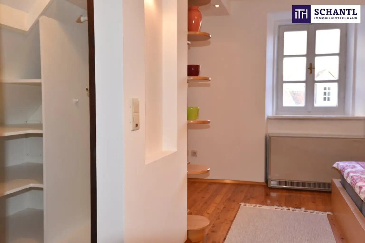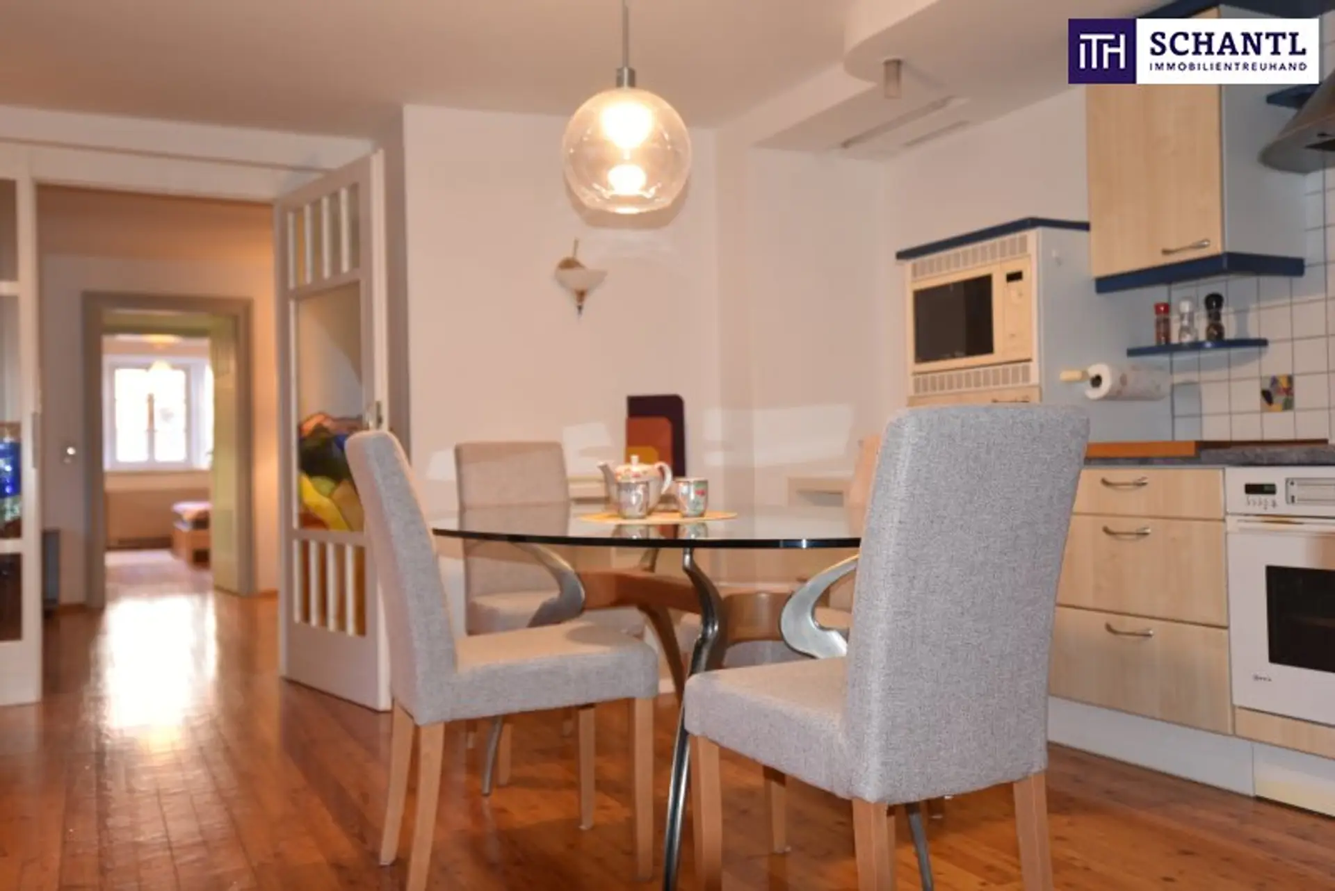 Diese außergewöhnliche Wohnung befindet sich im 3. Obergeschoss eines denkmalgeschützten Gebäudes direkt in der Grazer Fußgängerzone.