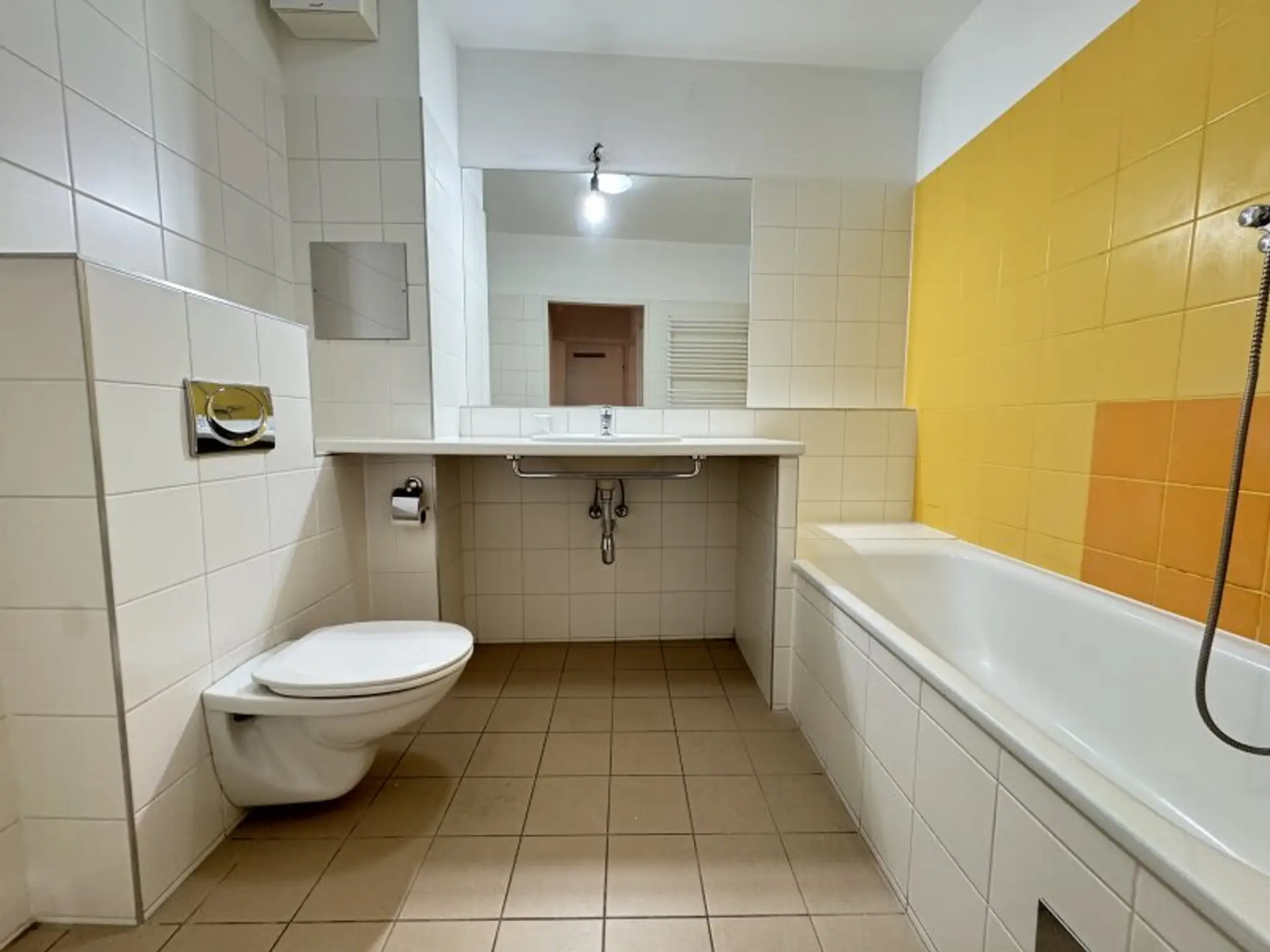 Die offene Wohnküche ist mit einer modernen Einbauküche ausgestattet und bietet Ihnen genügend Platz, um Ihre Kochkünste auszuleben. Fliesen und Parkett verleihen der Wohnung eine stilvolle Note und sorgen für ein angenehmes Wohnklima. Das Badezimmer mit Badewanne lädt dazu ein, nach einem langen Tag zu entspannen und neue Energie zu tanken.