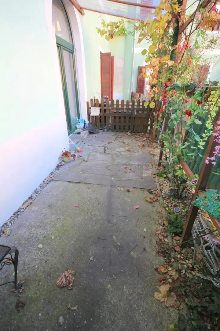 Die Wohnung ist hell und freundlich mit Fenster im Bad und WC WC extra. Der Wohnraum ist offen, Küche ist eingerichtet und vom Wohn.-Esszimmer kommen Sie in einen kleinen Garten mit einer Hütte.
