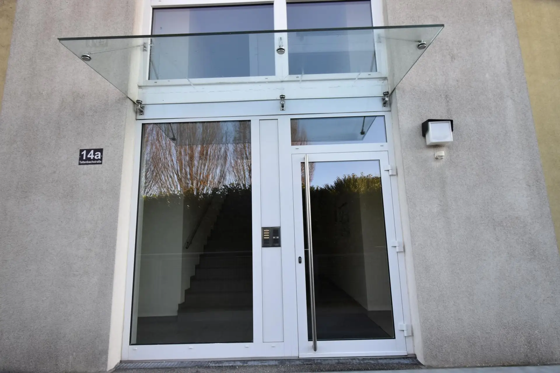 Durch das helle Treppenhaus gelangt man zur Wohnungstür. Dahinter ein Vorzimmer (3,58 m²),