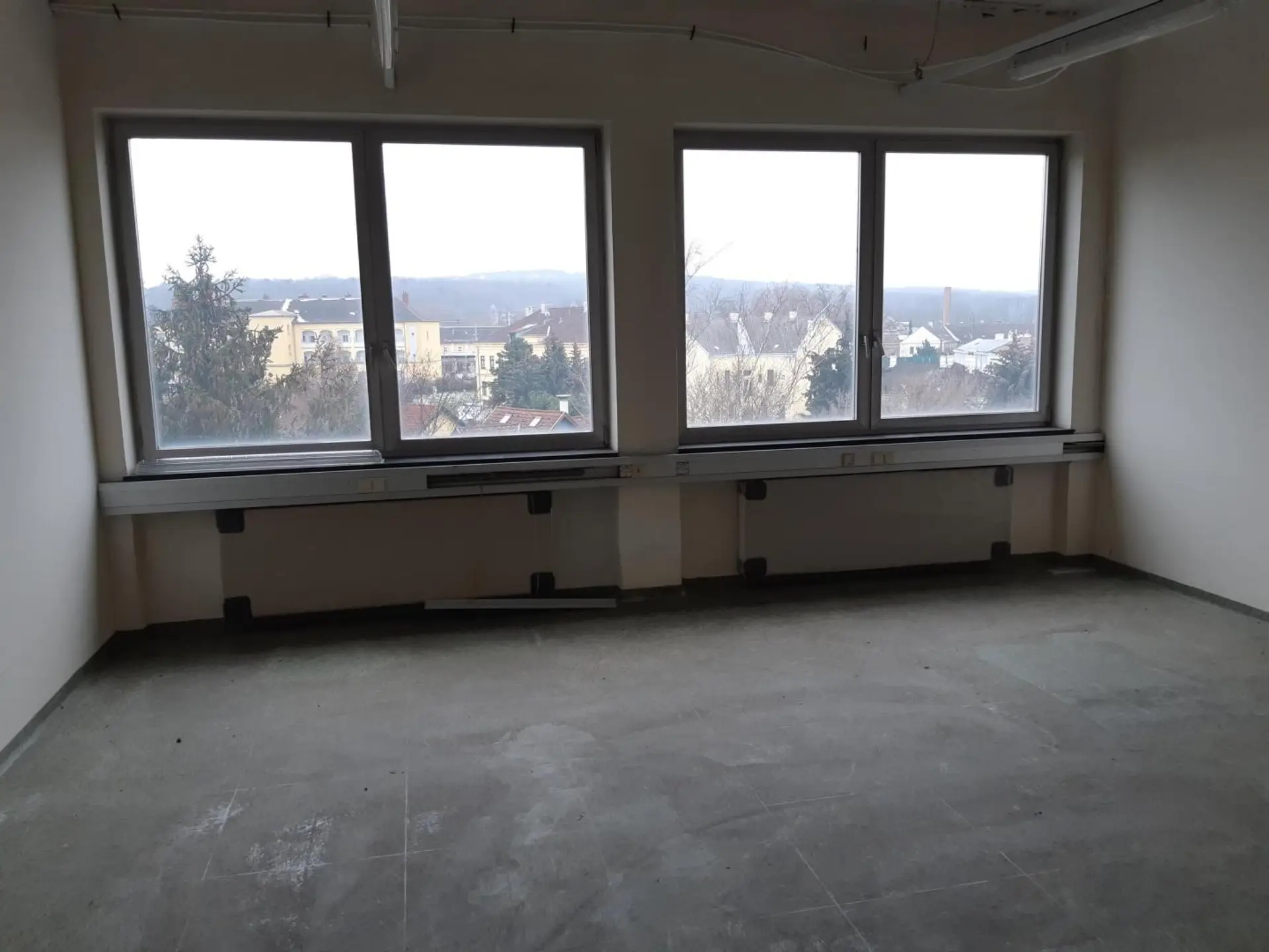 Vom gut gelegenen Büro im 3. Obergeschoss eröffnet sich ein Blick über die Bezirkshauptstadt Bruck an der Leitha.