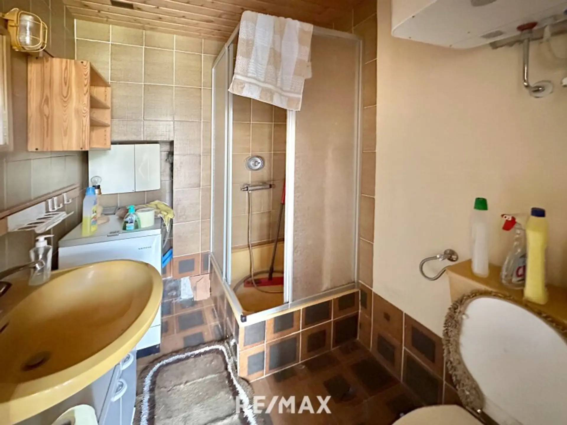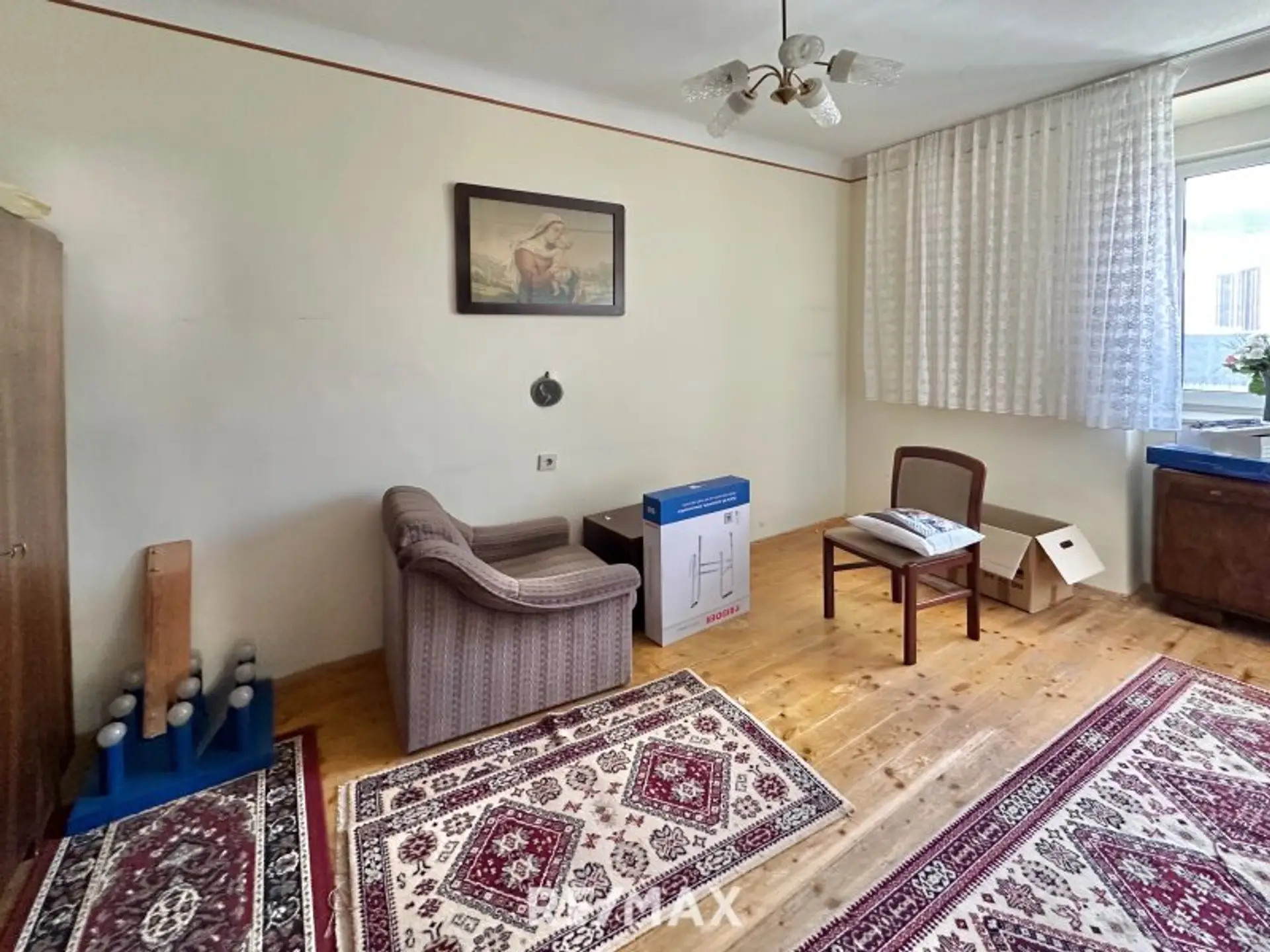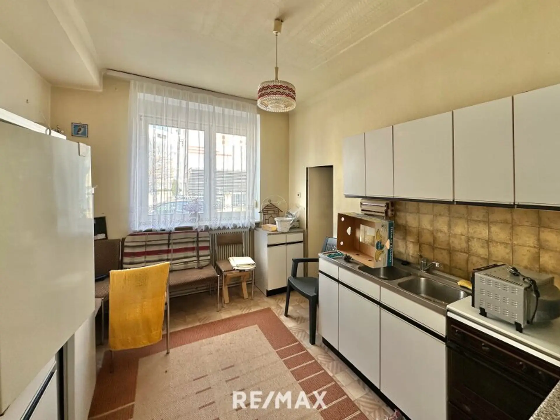 Das renovierungsbedürftige Gebäude steht an der Straße, wurde ursprünglich in den 1950er Jahren gebaut und in den 1980ern wurde ein Teil dazugebaut. Aktuell hat es 4 Zimmer, Küche, 2x Bad / WC - alles auf einer Ebene.