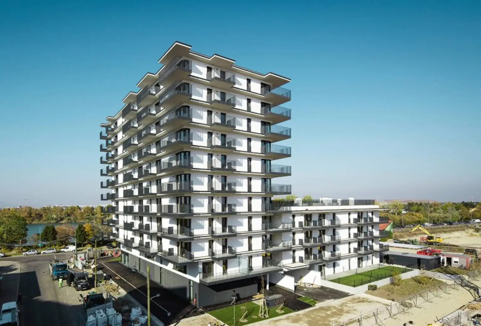 Die Zwei- und Drei-Zimmer-Wohnungen zwischen 36 m² und 66 m² bieten den perfekten Raum für Singles, Pärchen und Kleinfamilien. Die Wohnungsgrundrisse bestechen durch die durchdachte Raumaufteilung und die raumhohen Fensterelemente sorgen für einen lichtdurchfluteten Wohnraum. Jede der Wohneinheiten verfügt auch über eine private Freifläche wie Garten, Balkon, Terrasse oder Dachterrasse, ab dem 3. Stock größtenteils mit Blick aufs Wasser.