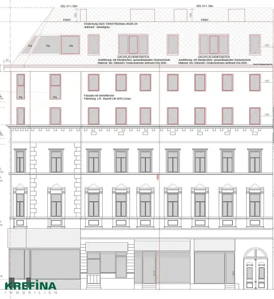 Das Haus ist bis auf die Geschäftsflächen im Erdgeschoß (mit hohem Mietertrag) weitgehend BESTANDFREI. Im Hinblick auf die Bauklasse IV besteht Aufstockungspotential und sollte eine Erweiterung der Nutzfläche auf ungefähr 1.600 m² möglich sein.
