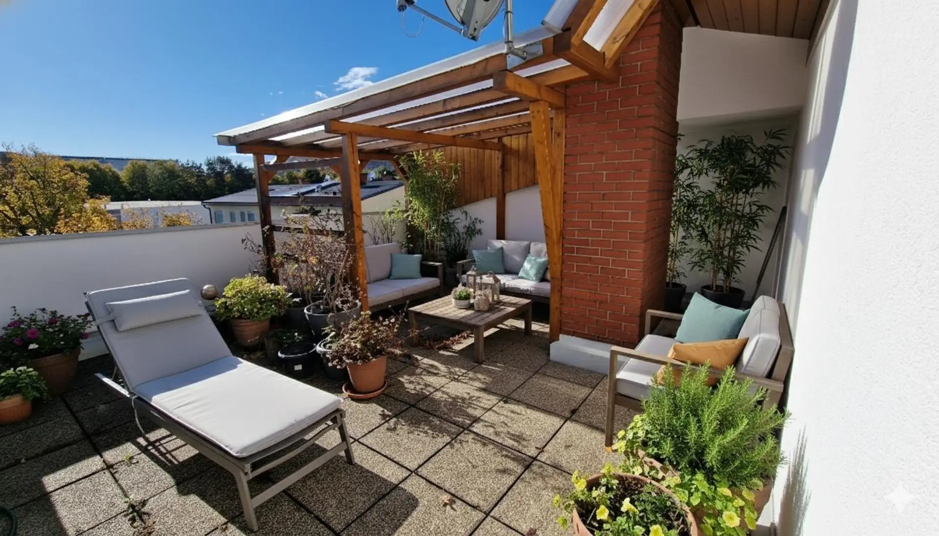 Willkommen in Ihrem neuen Zuhause – einer voll eingerichteten 3-Zimmer-Wohnung mit rund 80 m² Wohnfläche und einem echten Sonnenplatz-Highlight in einem Haus mit nur 4 Wohneinheiten: einer ca. 50 m² großen, uneinsehbaren Südterrasse, die Privatsphäre und Sonne in perfekter Harmonie vereint.