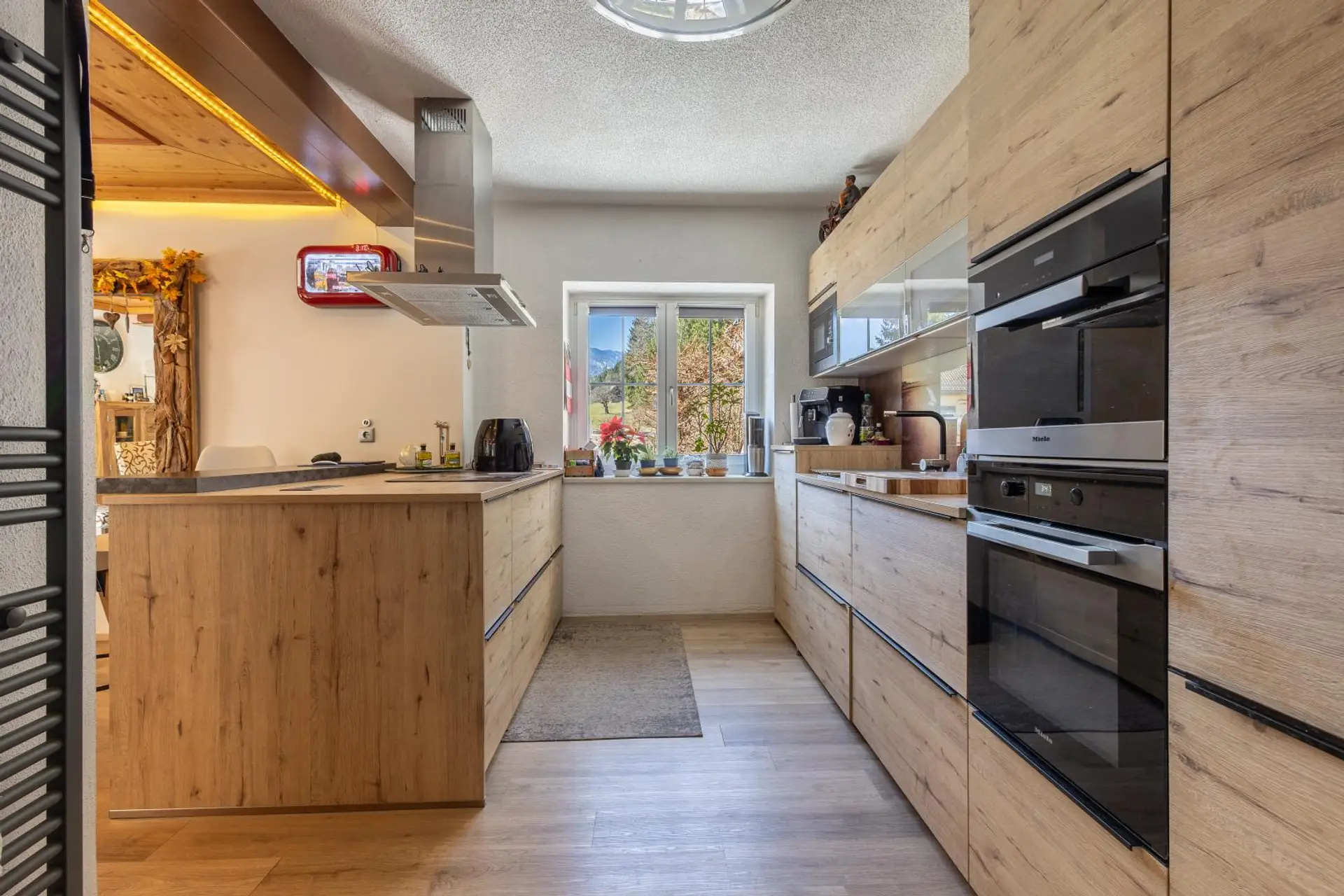 Auf rund 240 m² Wohnfläche (ca. 300 m² Nutzfläche) bietet die Liegenschaft großzügigen Raum für Familie, Arbeiten und Gäste. Besonders attraktiv ist die im Obergeschoss integrierte Ferienwohnung, die durch die Nähe zum Weißensee (nur ca. 5 km entfernt) ein interessantes Zusatzpotenzial bietet (ca. 80–100 Vermietungstage jährlich realistisch).