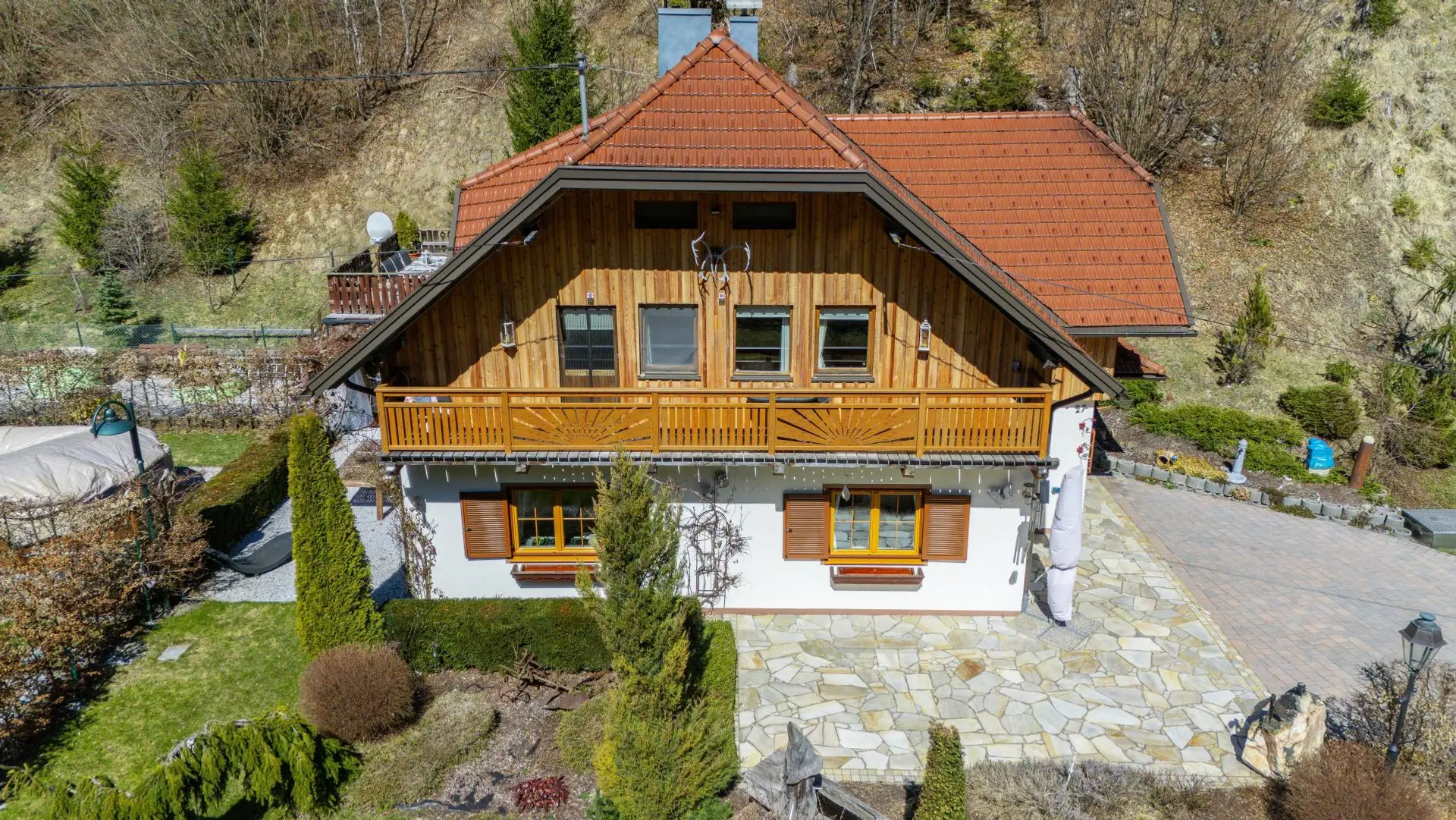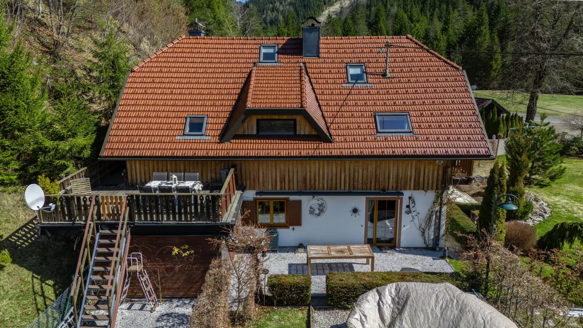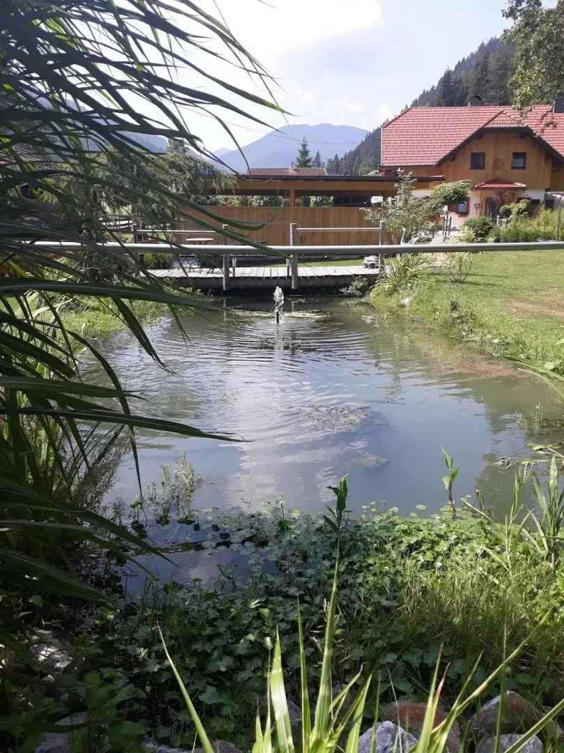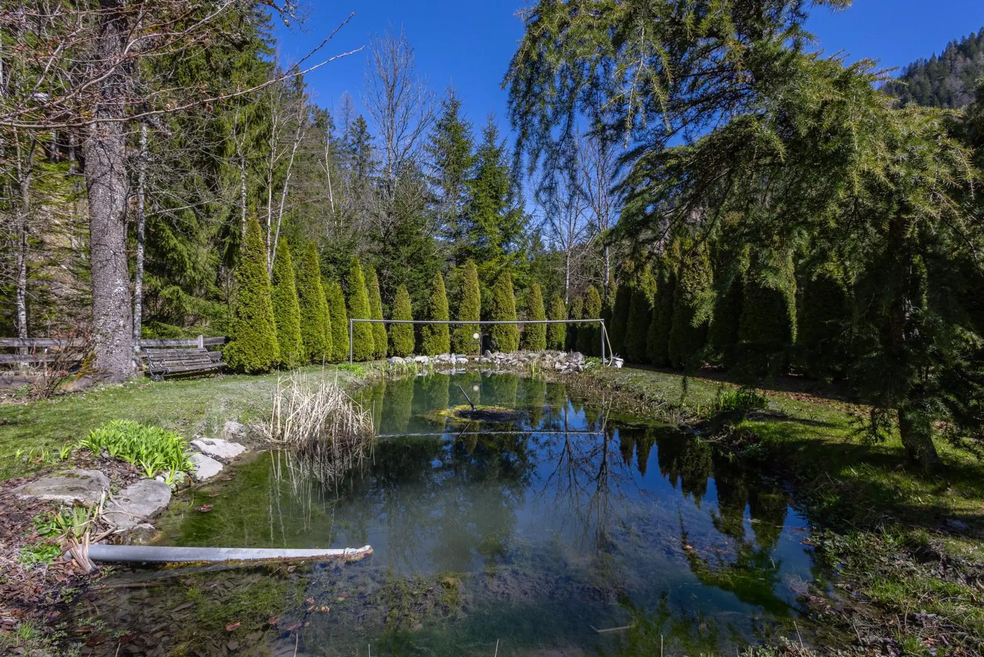 Das rund 4.000 m² große Grundstück umfasst neben einem gepflegten Gartenbereich (ca. 1.000 m²) auch einen eigenen Waldanteil – ideal für Naturliebhaber und Ruhesuchende. Ein kleiner Fischteich, eine Sonnenterrasse sowie ein Balkon schaffen zusätzliche Lebensqualität.