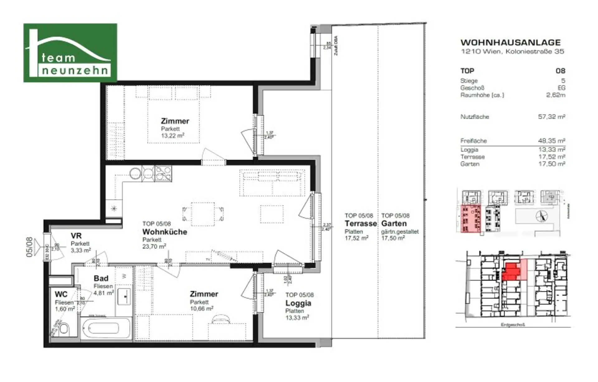 * Tiefgarage (optional anmietbar um EUR 90,– brutto/Monat)