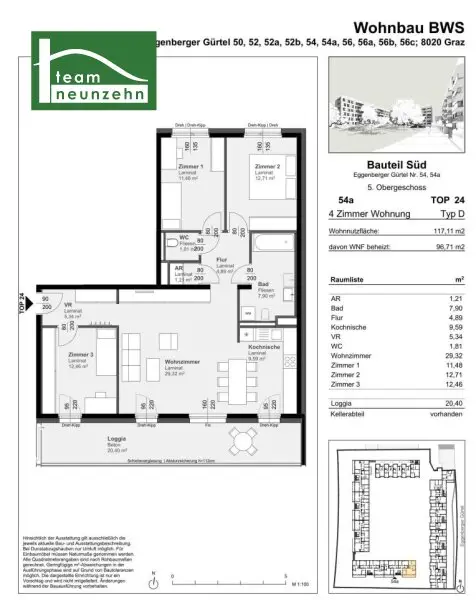 Wohnung Haus 54a, Top 24 – 4-Zimmer-Wohnung im 5. Obergeschoss mit Loggia