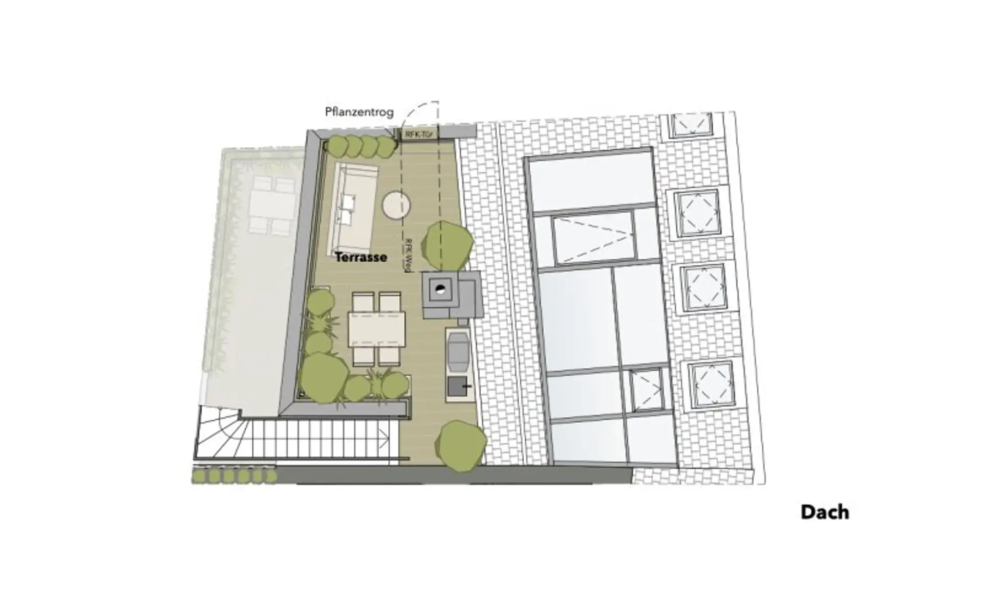 Begrünte Arkadengänge, großzügige private Freiflächen und ein nachhaltiges Energiekonzept prägen das Erscheinungsbild des Projekts. Die Energieversorgung erfolgt über eine hauseigene Geothermieanlage und unterstreicht den Anspruch an Effizienz, Langlebigkeit und Zukunftsfähigkeit.