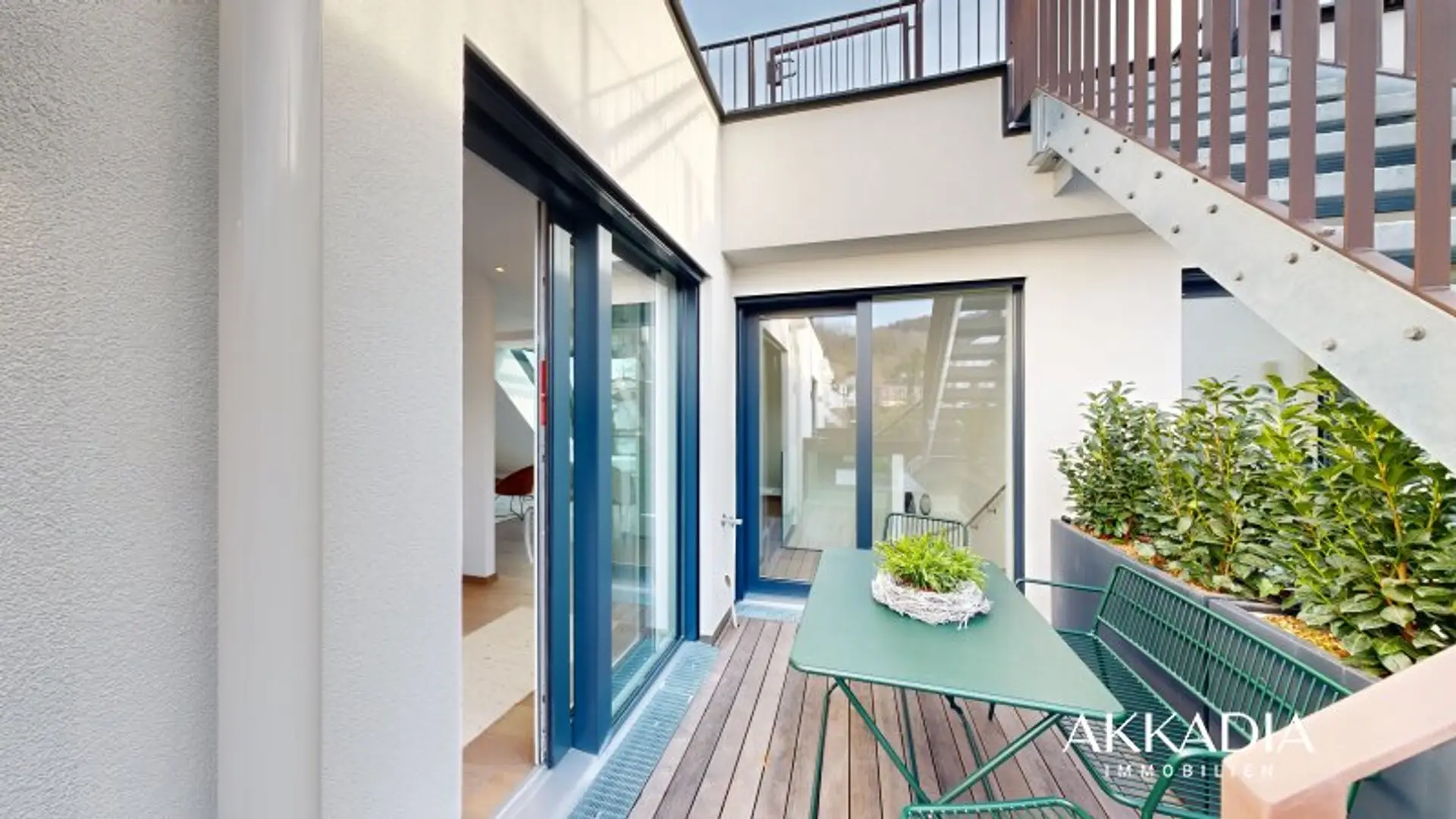 * Dachterrasse ca. 22,70 m² mit Blick in die grüne Umgebung von Sievering