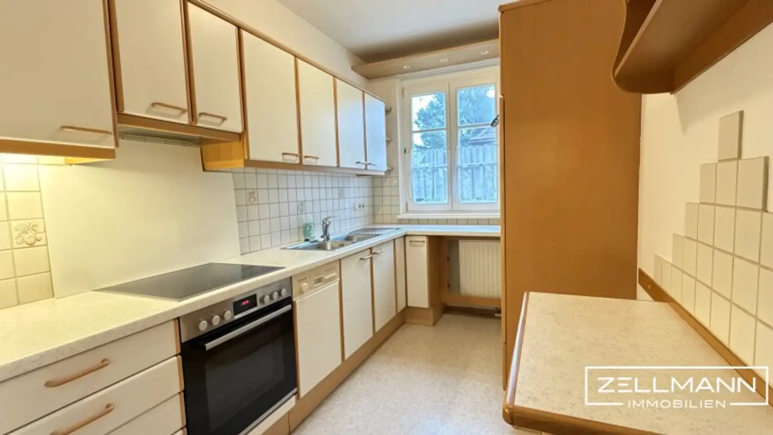 Die Küche ist derzeit separat ausgeführt. Eine Verbindung mit dem Wohnzimmer ist baulich möglich und erlaubt die Realisierung eines modernen, offenen Wohn-Essbereichs – ein attraktives Potenzial für zeitgemäßes Wohnen.