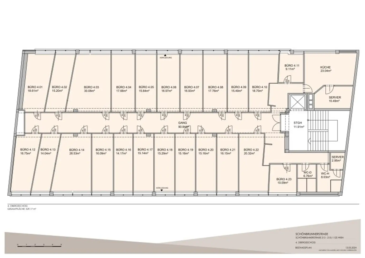 Zur Vermietung stehen zwei Büroetagen mit rund 10.060 m² in zentraler Lage nahe der U6/U4 Station Längenfeldgasse. Eine gute öffentliche Anbindung ist gegeben.