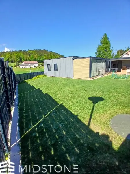 * Bauweise: modulare Bauweise (Holz und Stahl)