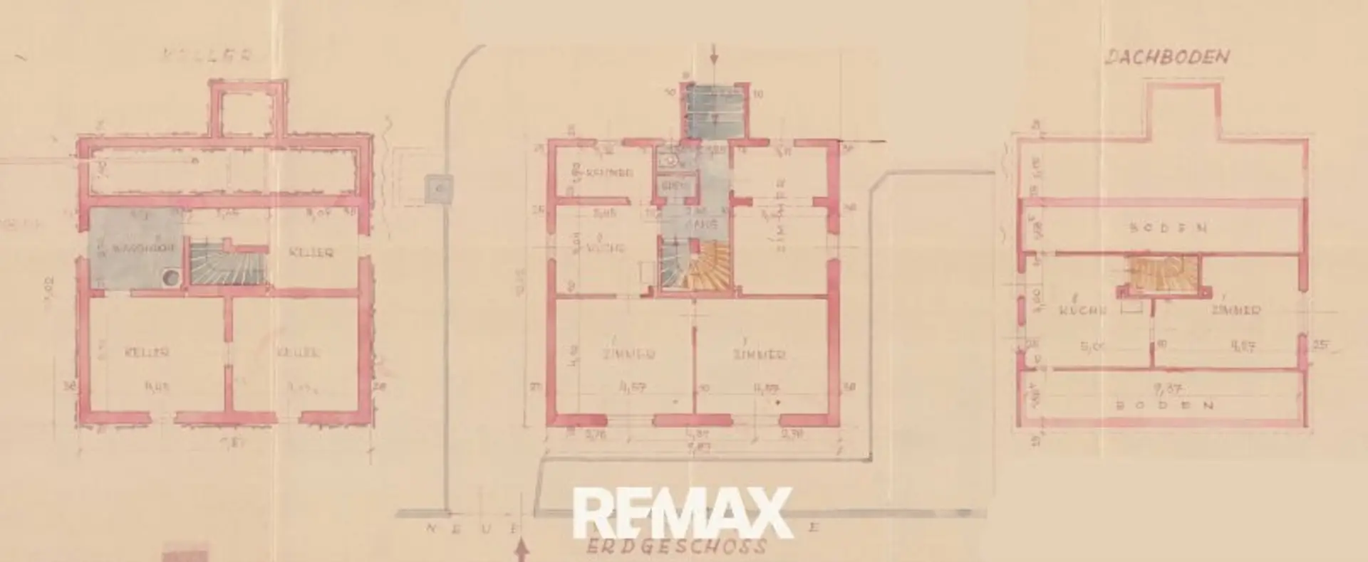 Wohnfläche ca. 107 m² (ca. 76 m² Erdgeschoß, ca.31 m² Dachgeschoss). Das Obergeschoss ist behördenseitig derzeit nicht als Wohnraum gewidmet. Nach Rücksprache mit der Baubehörde steht aber einer Umwidmung nichts im Wege.