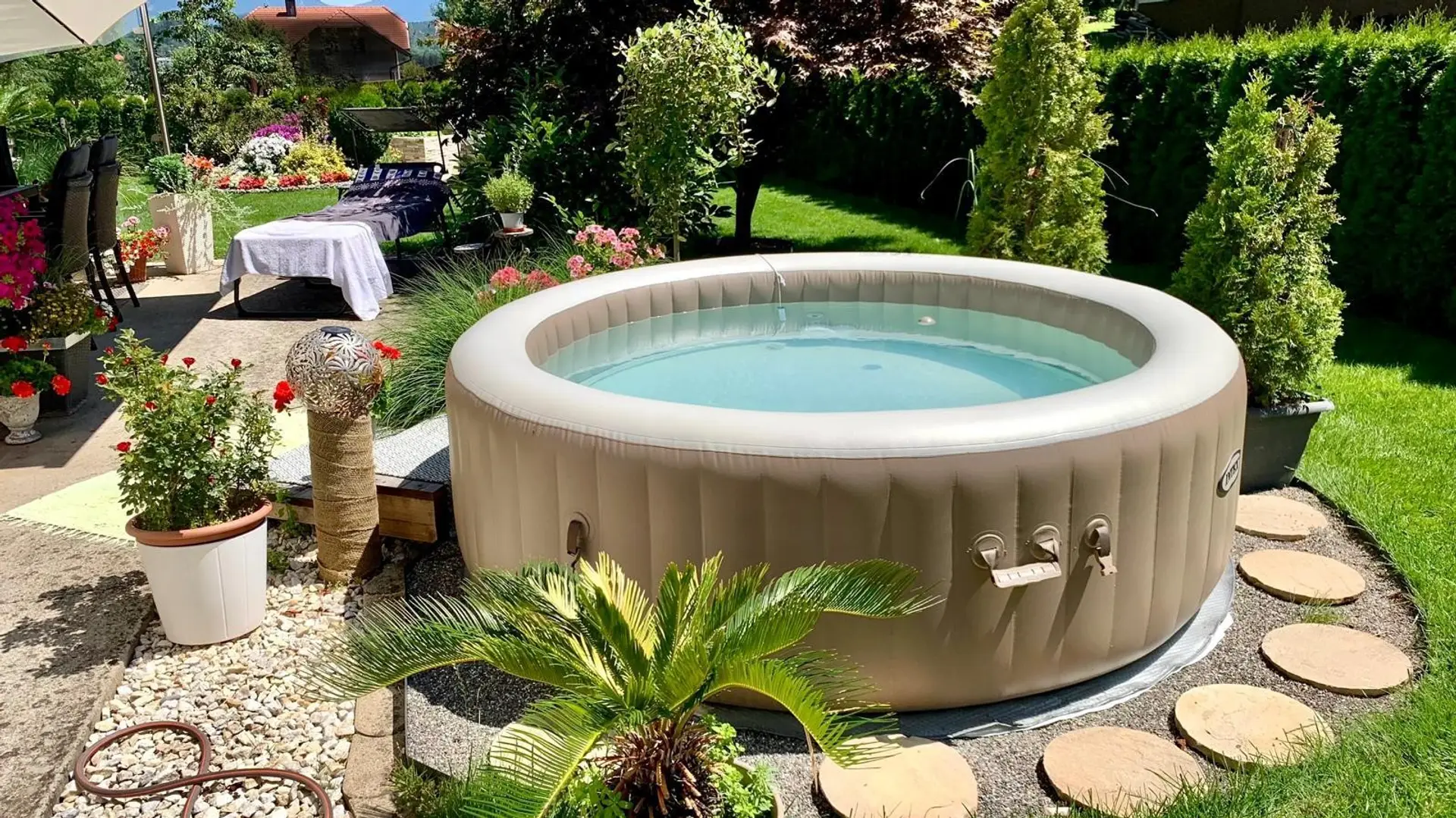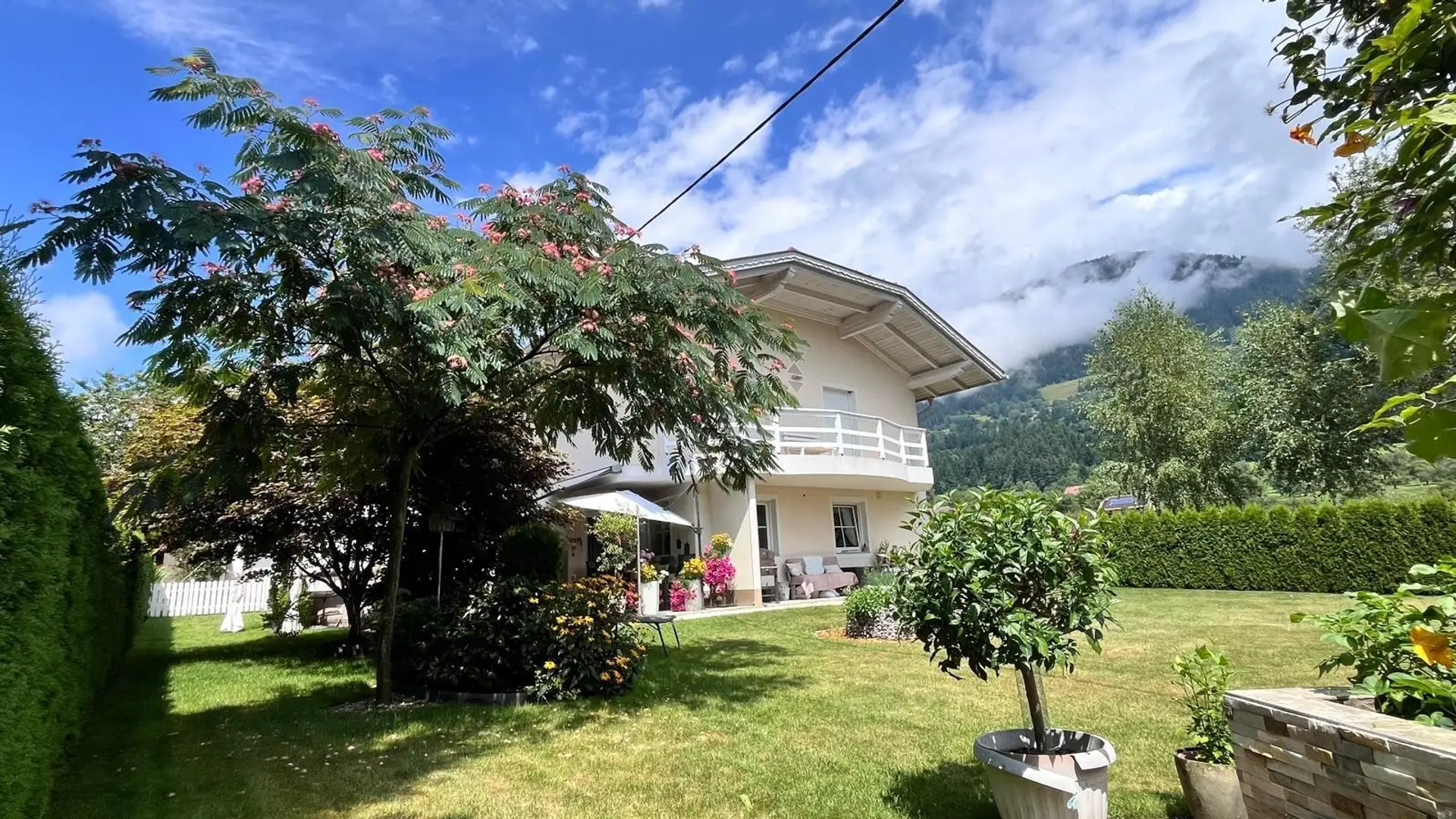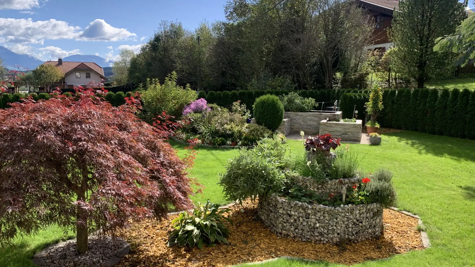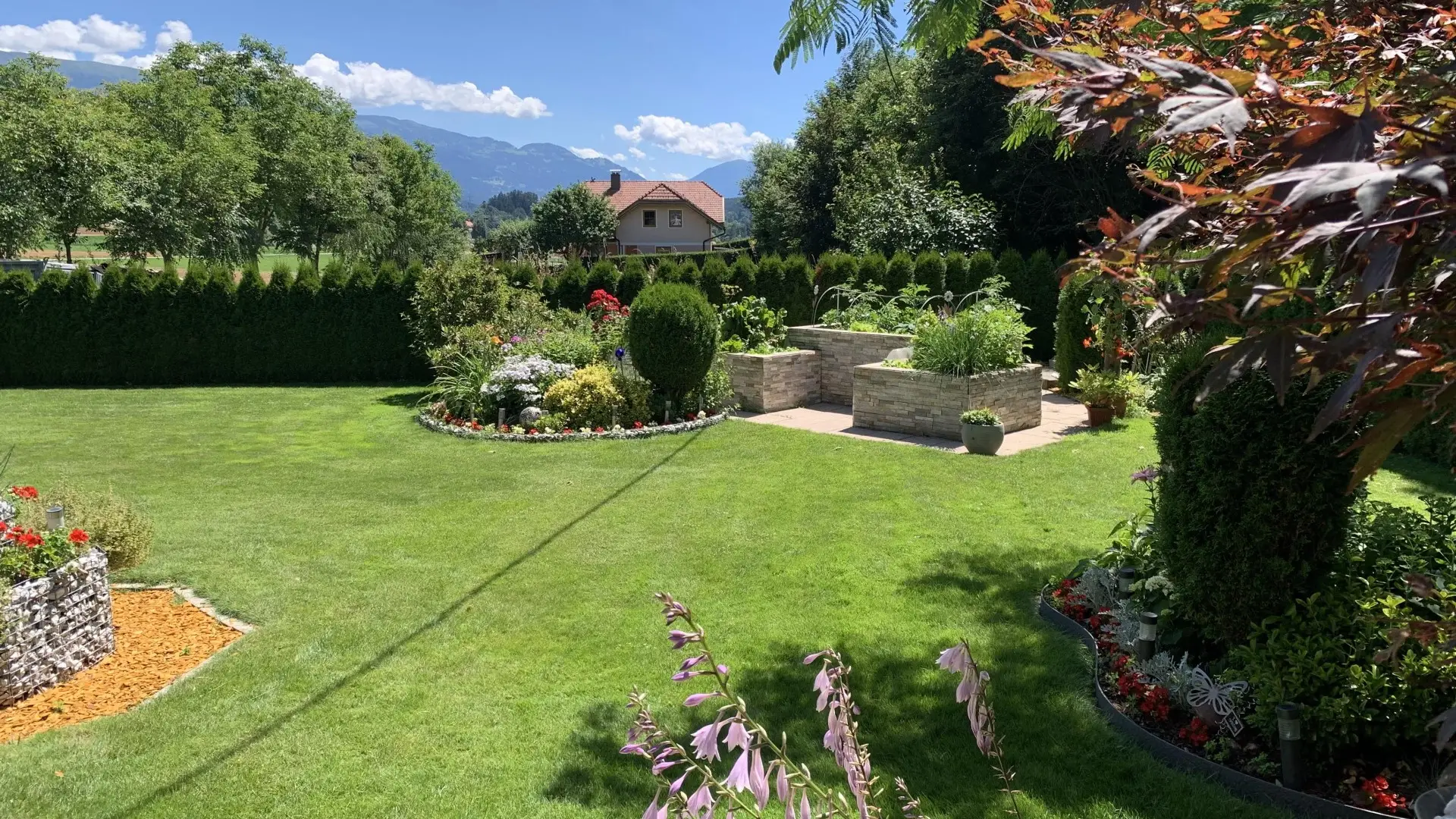 DER GARTEN öffnet sich nicht einfach – er entfaltet sich. Gewachsen und lebendig. Bäume spenden Schatten, Blüten setzen Akzente, kleine Rückzugsorte laden dazu ein, einfach sitzen zu bleiben. Es ist eine wundervoll gestaltete Anlage mit unglaublicher Qualität, für sonnige Nachmittage oder Sommerabende auf der Terrasse, mit Raum für die ganze Familie. Dieser Garten ist kein Zubehör – er ist ein echter Lebensraum.