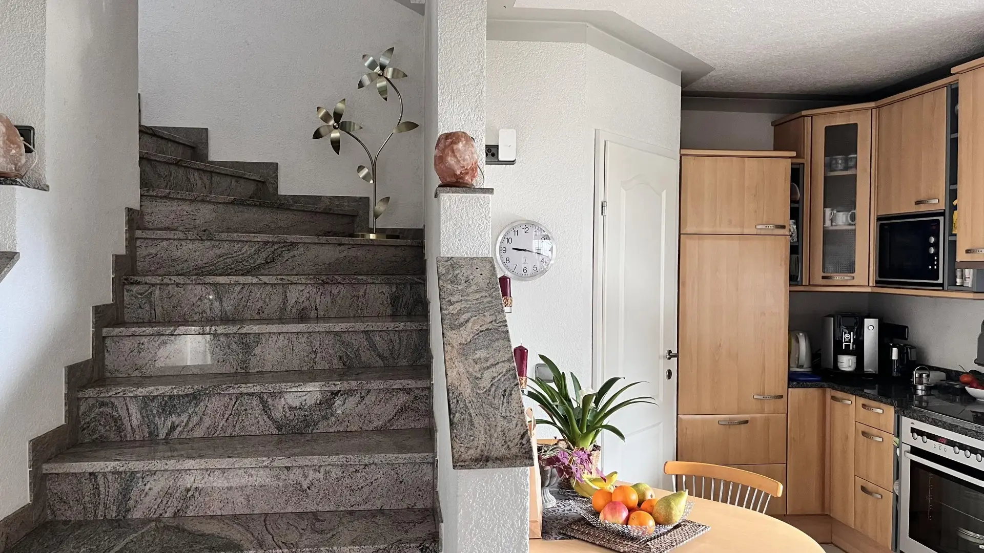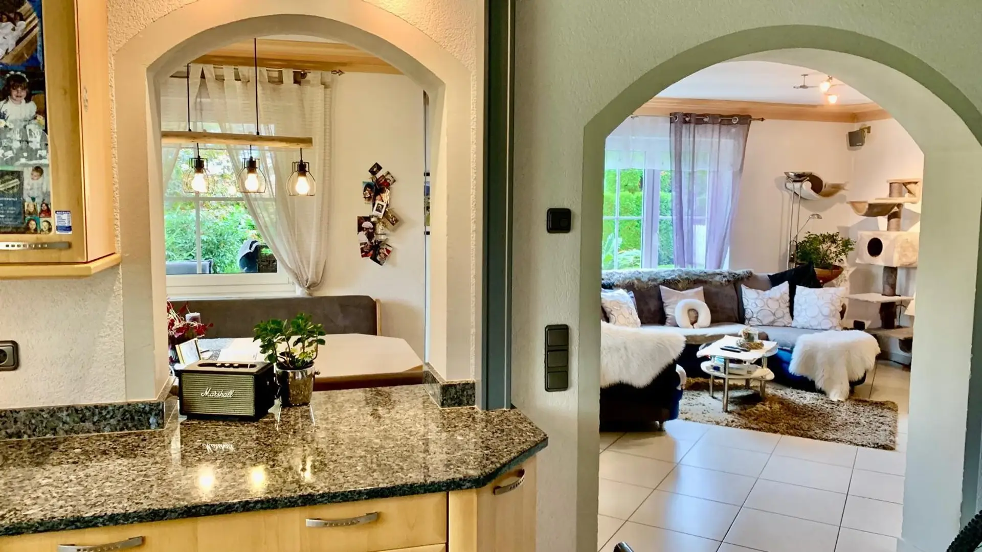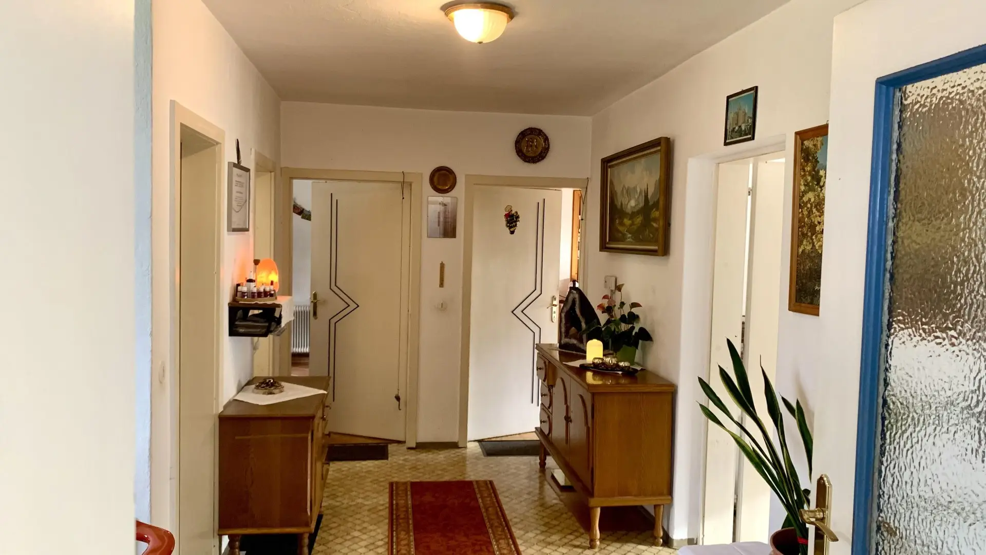 Massive Bauweise, eine klare Struktur, funktionierende Technik: Fußbodenheizung im Neubau, bewährte Wärme im Altbau, eine zentrale Heizlösung kombiniert mit moderner Photovoltaikanlage – hier trifft Beständigkeit auf zeitgemäße Effizienz. Alles wirkt logisch, stimmig und vorausschauend.