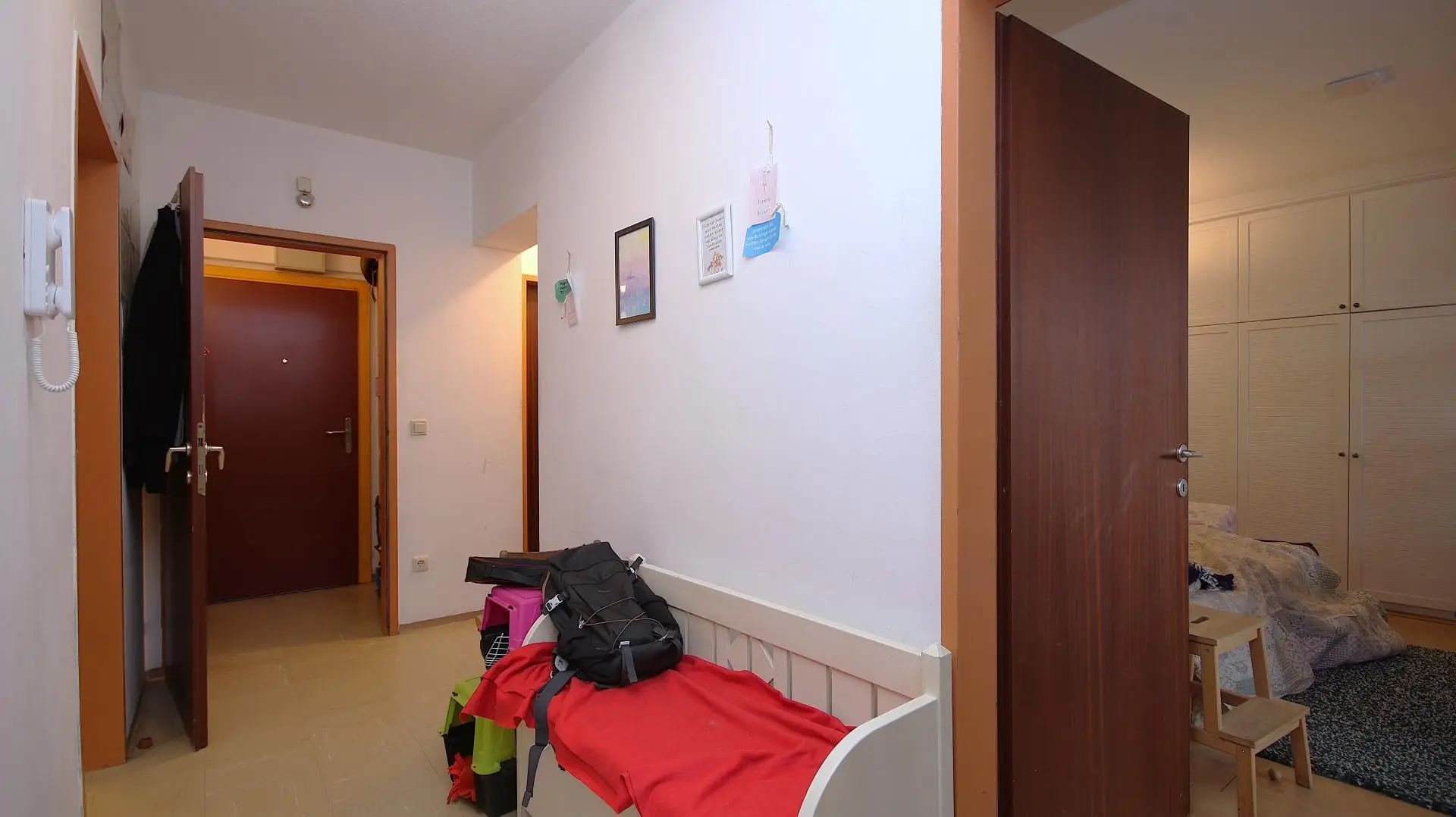 Die Zimmer sind einzeln von einem zentralen Vorraum aus zu begehen. Vom Wohnzimmer gelangt man auf eine Loggia, die speziell im Sommer zum Verweilen im Freien einlädt. Bad und WC sind getrennt. Des Weiteren gibt es einen kleinen Abstellraum sowie im Keller ein kleines Kellerabteil.