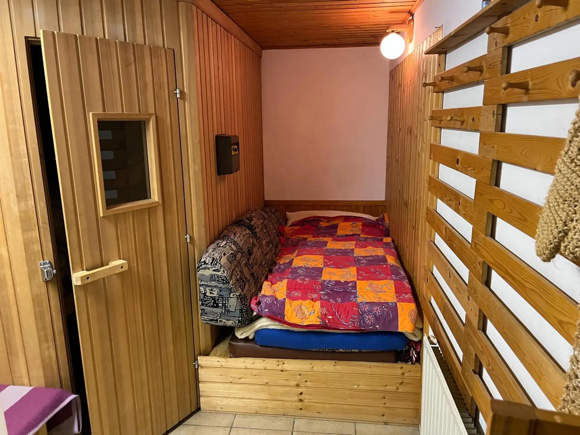 Ebenso eine finnische Sauna mit Ruheraum und Dusche.