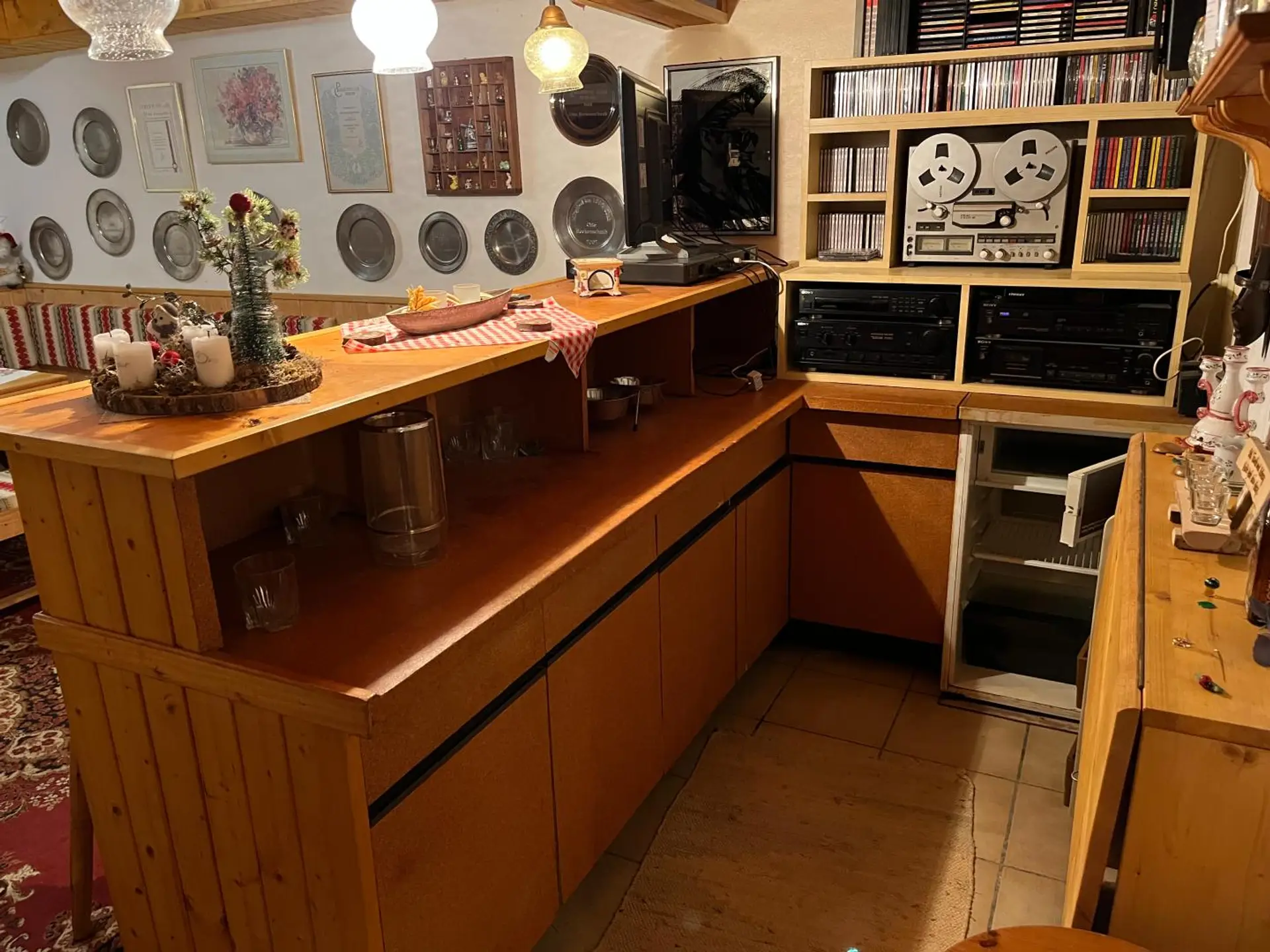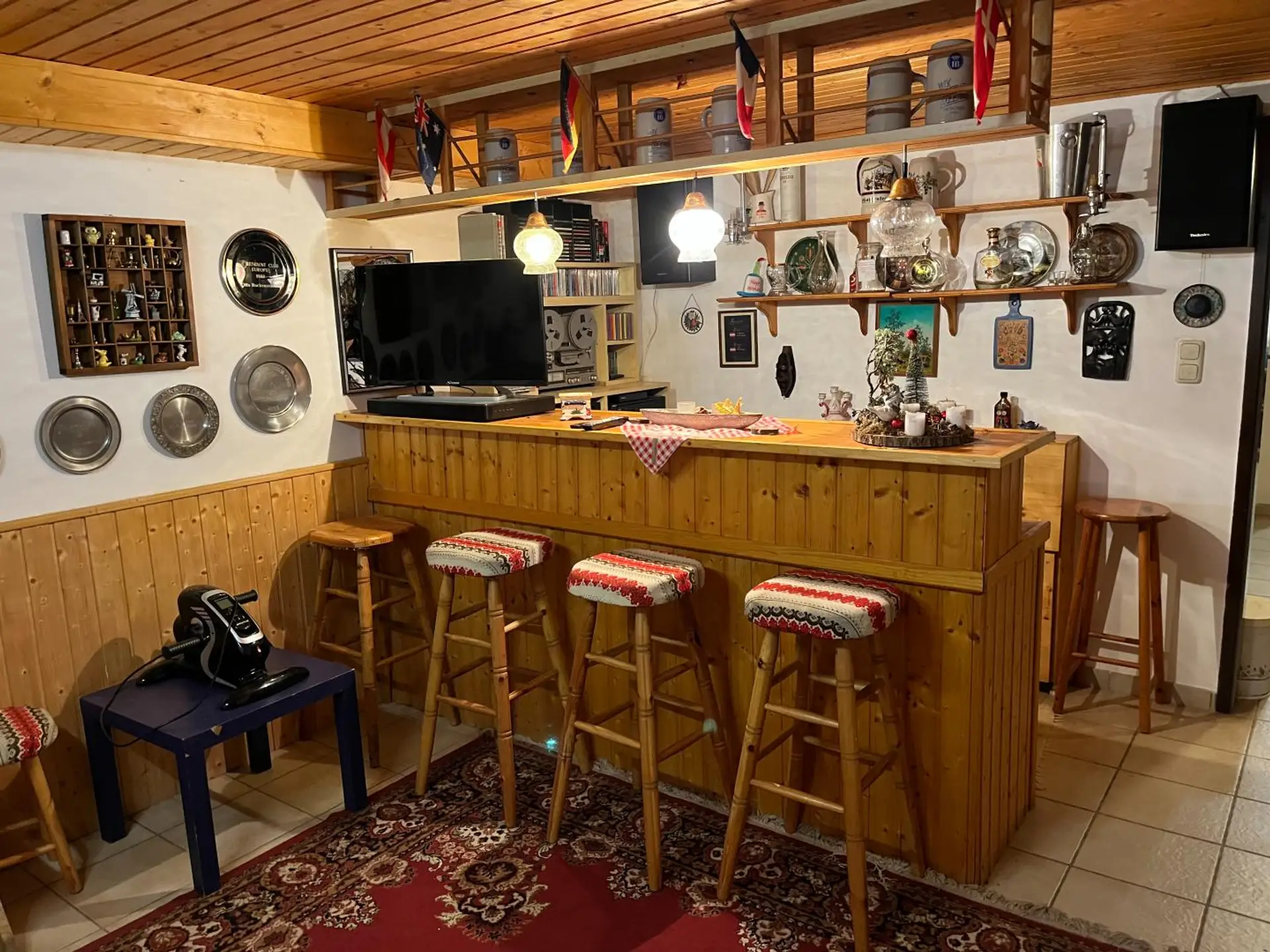 Im Keller hat sich der Besitzer einen Partyraum mit eine Kellerbar installiert.