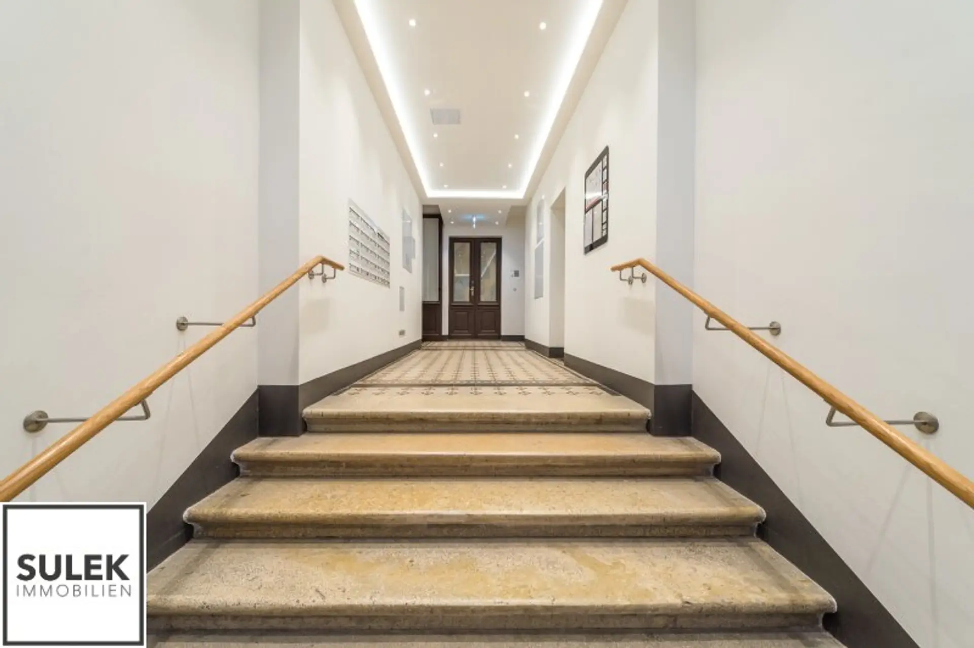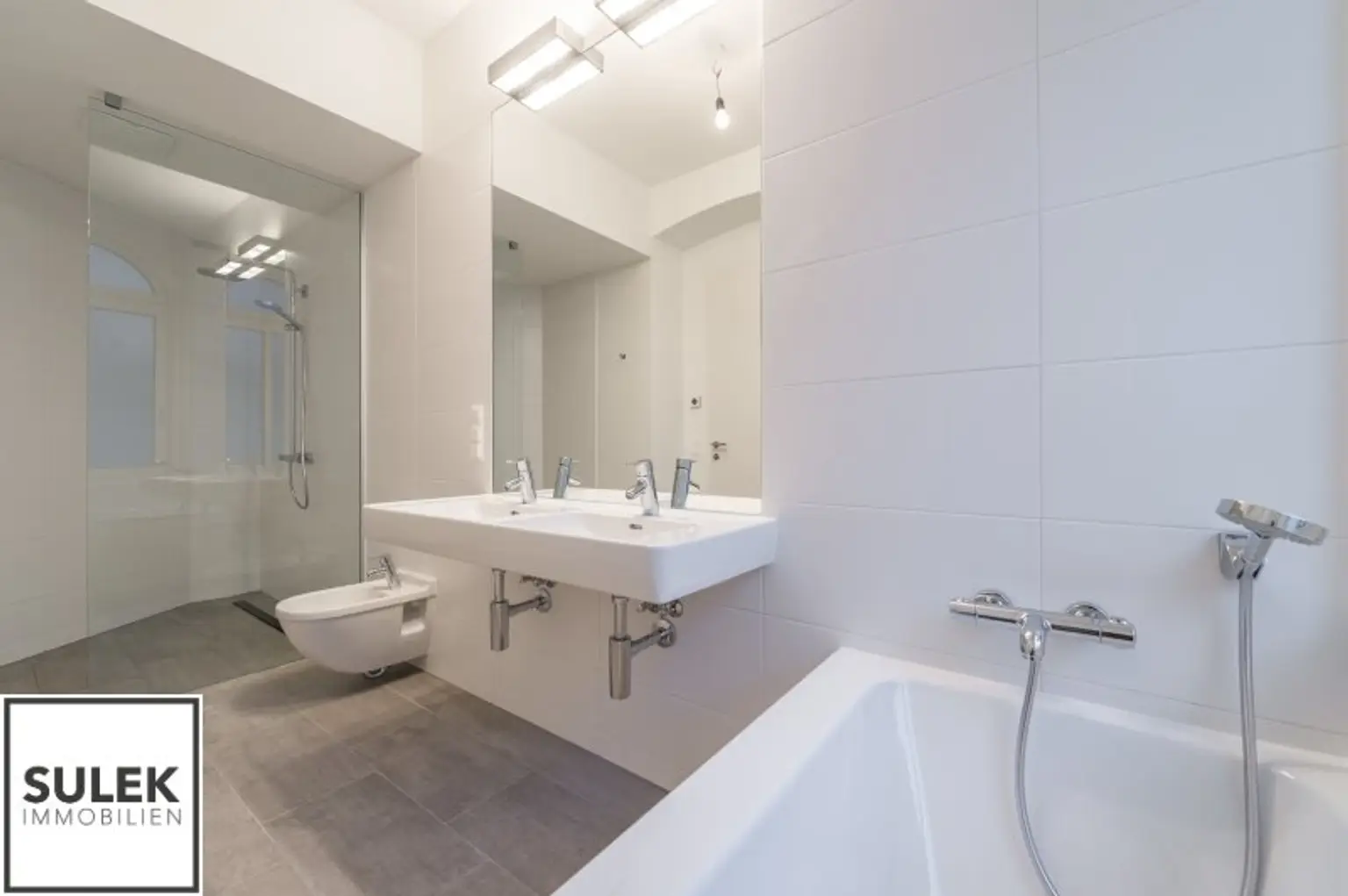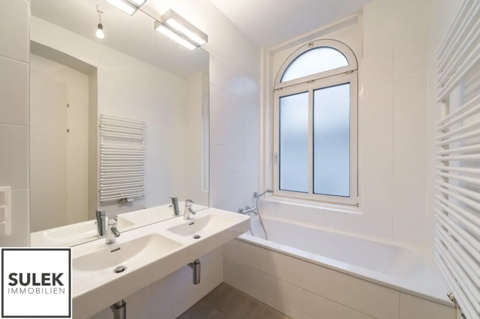 Diese Dachgeschoss - Wohnung ist im 4. Stock eines durchgreifend sanierten Altbaus mit Stilfassade gelegen und wird über einen zentralen Vorraum betreten. Vom Vorraum aus erreichen Sie 2 ident Große große Schlafzimmer, ein Badezimmer mit Wanne und Toilette, sowie eine Gästetoilette mit Handwaschbecken.