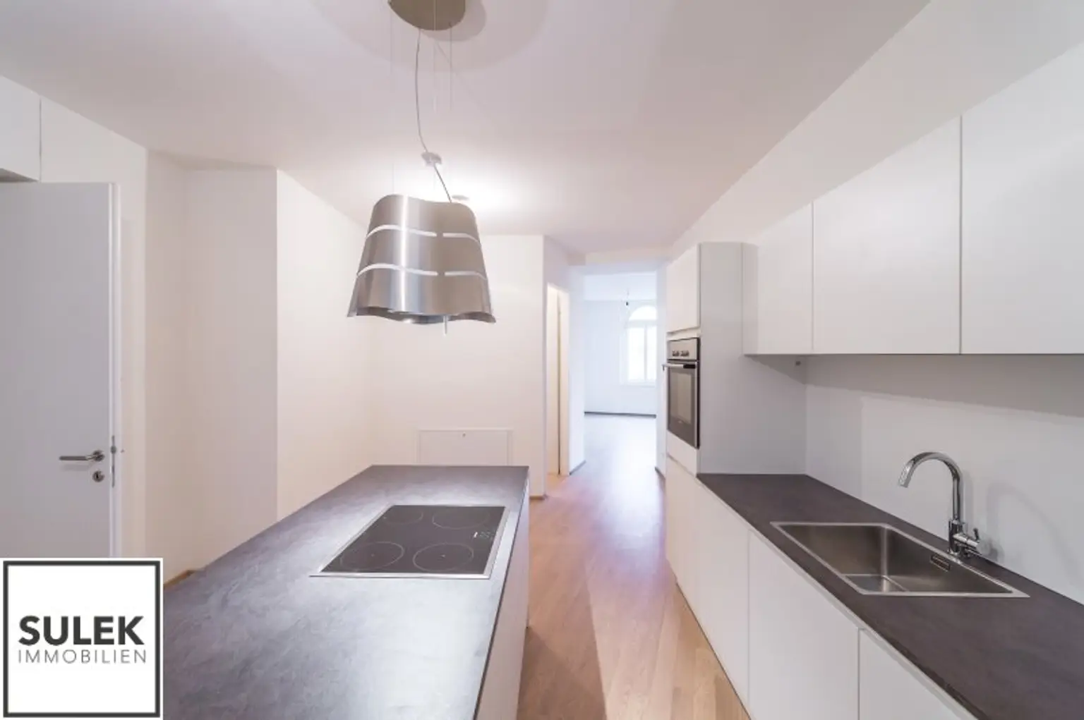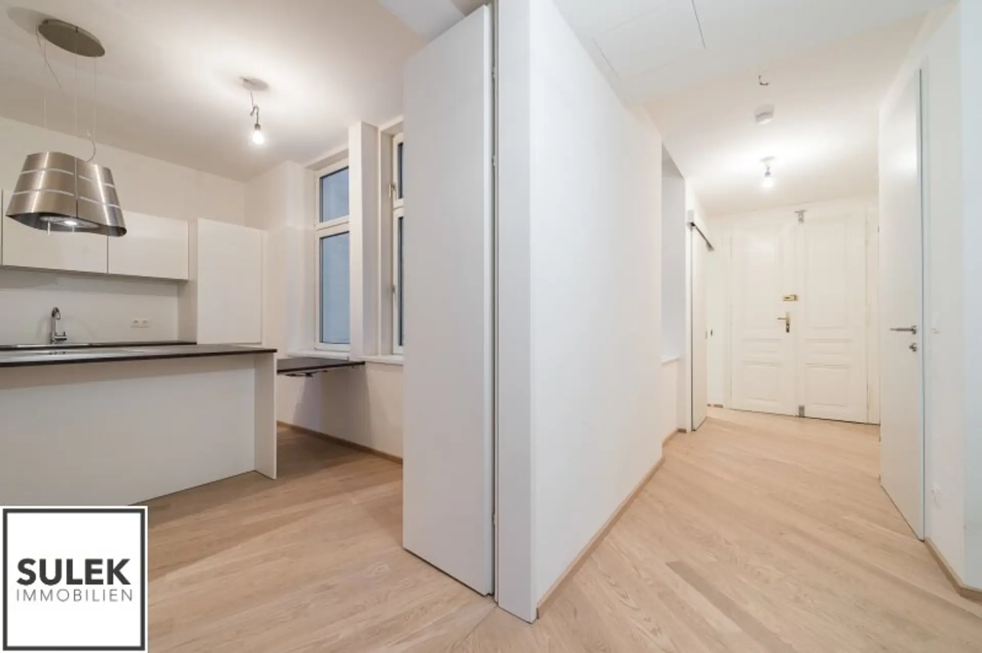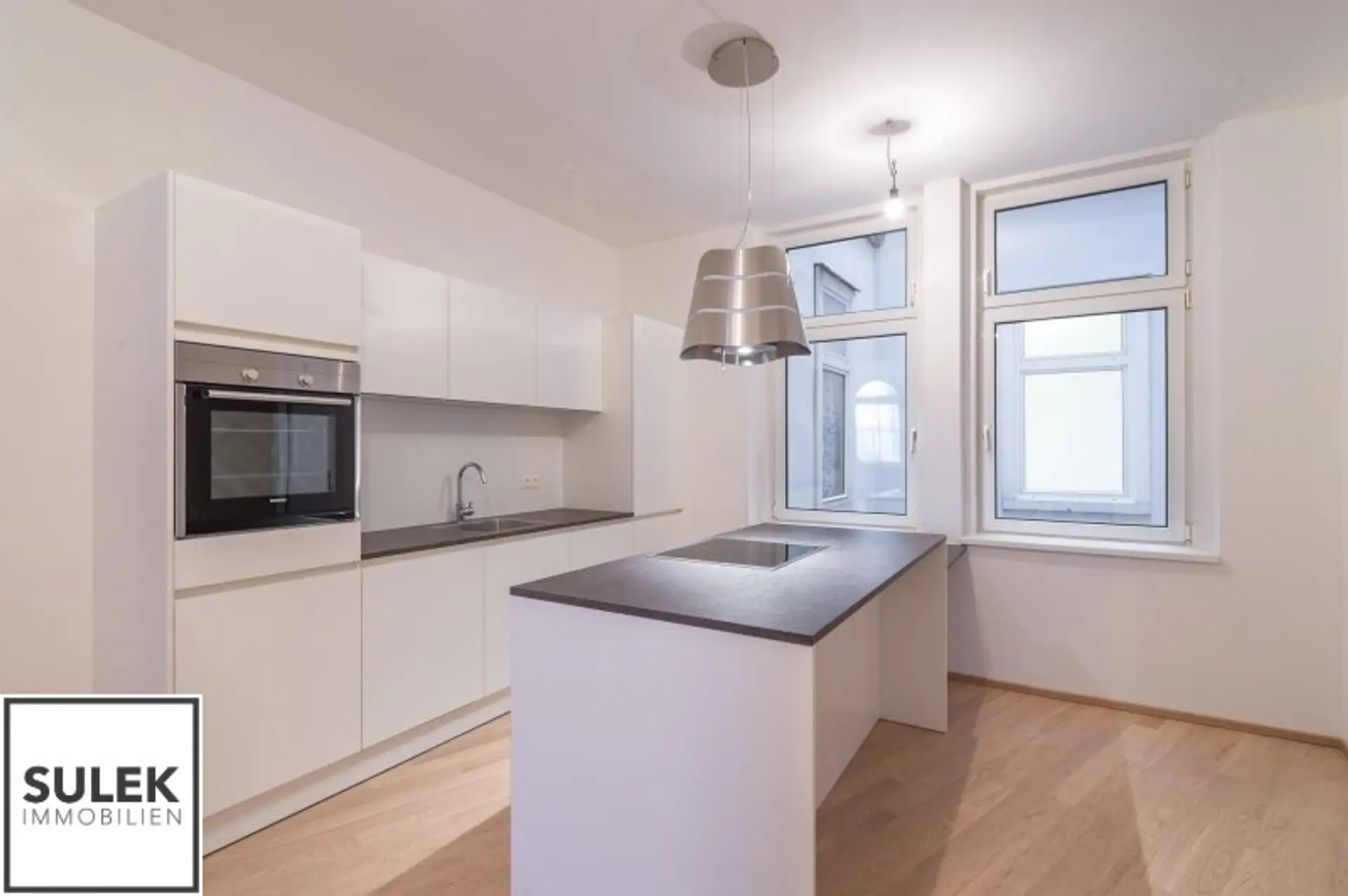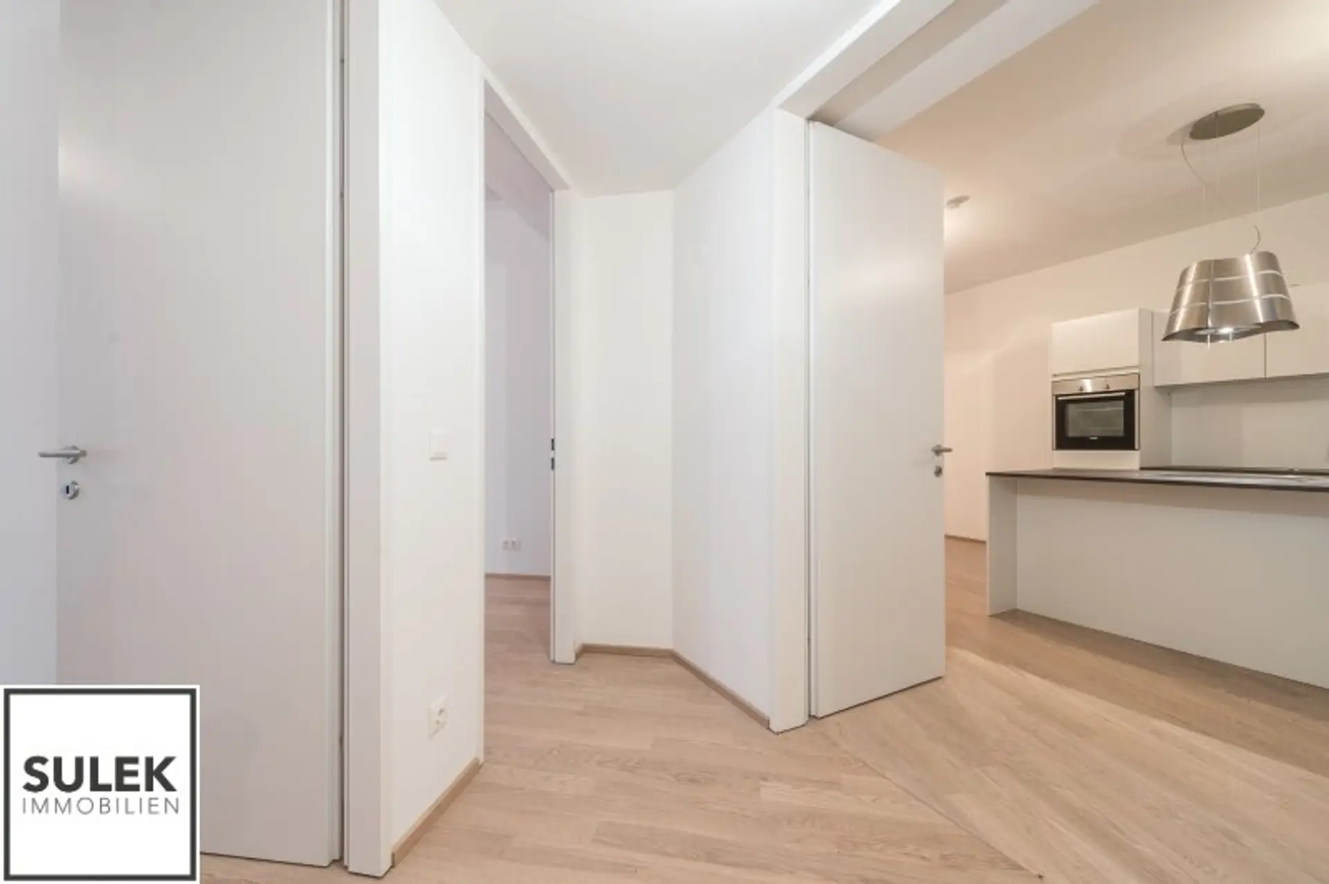Rechter Hand vom Eingangsbereich liegt separate Küche mit Tischlerverbau und Siemens-Geräten. Ein praktischer Abstellraum ist ebenfalls von der Küche aus zu betreten.