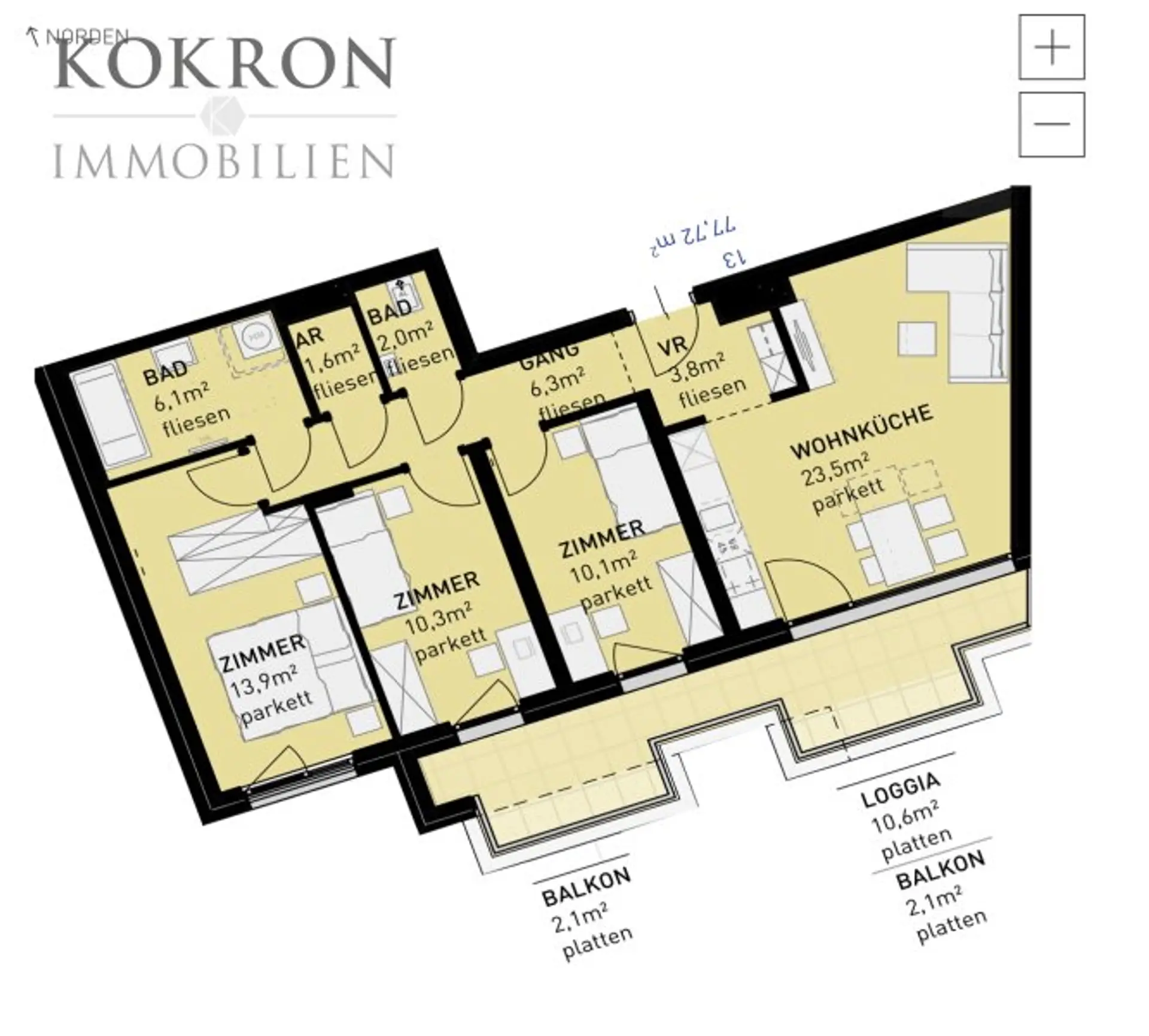 Sollten Sie mehr Platz benötigen, planen wir auch gerne eine größere Wohnung (zB eine 4-Zimmer-Wohnung anstelle von zwei nebeneinander liegenden 2-Zimmer-Wohnungen) für Sie. Für nähere Informationen stehen wir Ihnen gerne zur Verfügung!